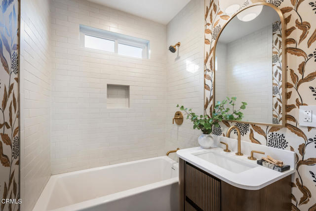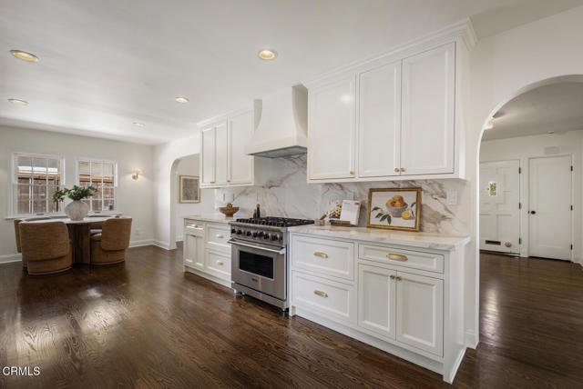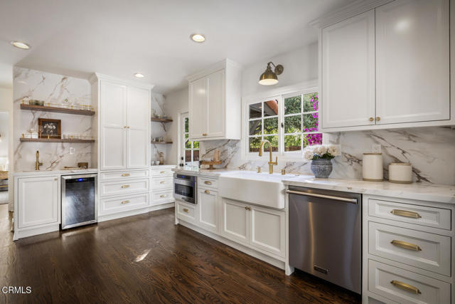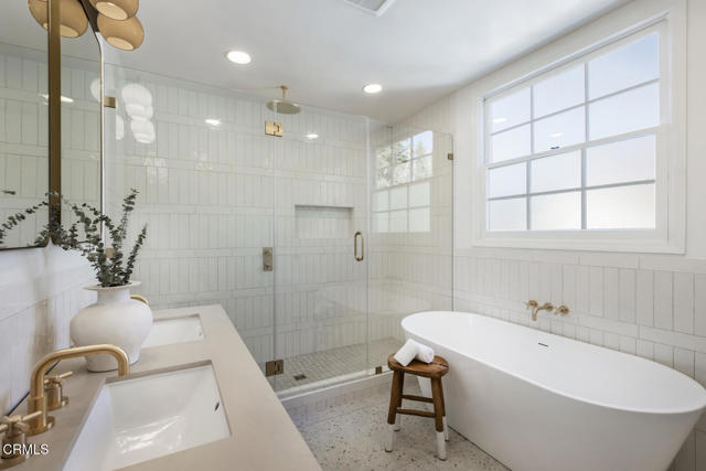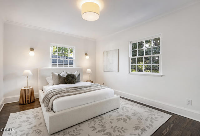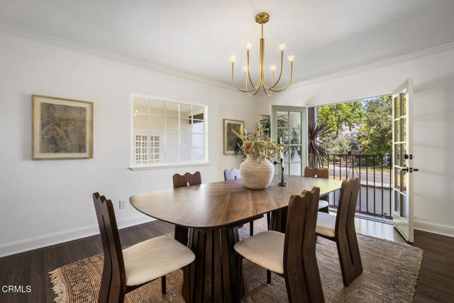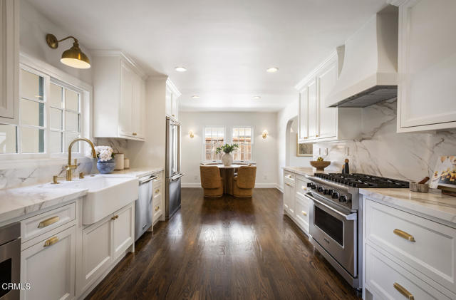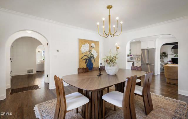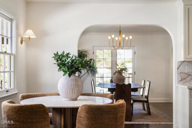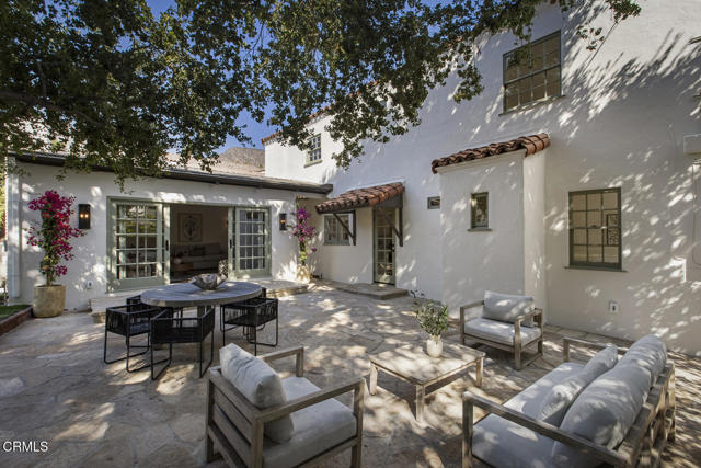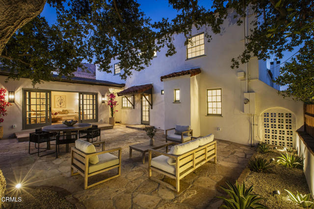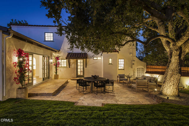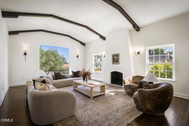 This stunning 1929 Spanish Colonial Revival has been beautifully restored, blending historic character with modern luxury. Set on a generous Altadena lot, the 4-bedroom, 3-bathroom home showcases arched doorways, vaulted ceilings with exposed beams, Malibu tile accents, and fireplaces that reflect its Spanish charm. A large window in the living room fills the space with natural light and frames views of the front yard, highlighted by a mature olive tree. The gourmet kitchen offers custom cabinetry with quartz countertops, Viking appliances, and a custom wet bar with walnut shelving. The dining room features a Juliet balcony, while the primary suite enjoys a private balcony with mountain views--creating inviting spaces to enjoy both morning light and evening sunsets. The main level includes a bedroom and bathroom with a shower, while upstairs provides three additional bedrooms and two bathrooms, including the primary suite with a spa-inspired bath and mountain views. Modern updates include hardwood floors, marble and porcelain finishes, frameless glass showers, premium fixtures, recessed lighting, fully updated plumbing and electrical, and dual HVAC systems with Nest control. Professionally designed landscaping with a flagstone courtyard, ambient lighting, and lush greenery creates a private retreat just moments from Altadena's hiking trails, parks, shopping, and local eateries. This turnkey residence offers both classic beauty and a lifestyle of refined elegance.