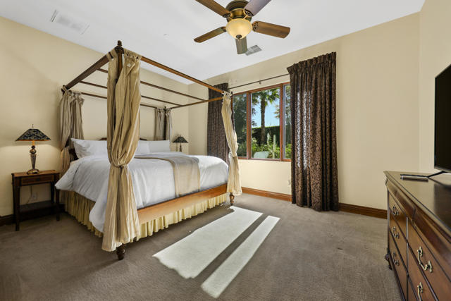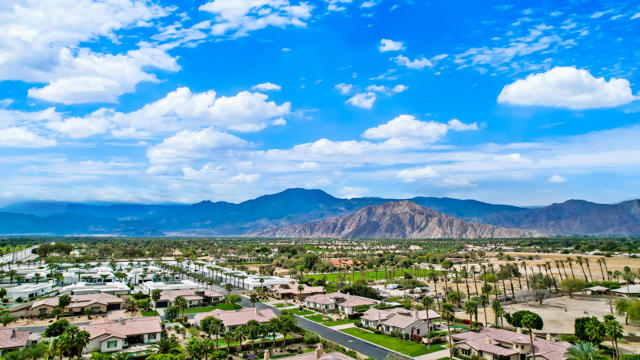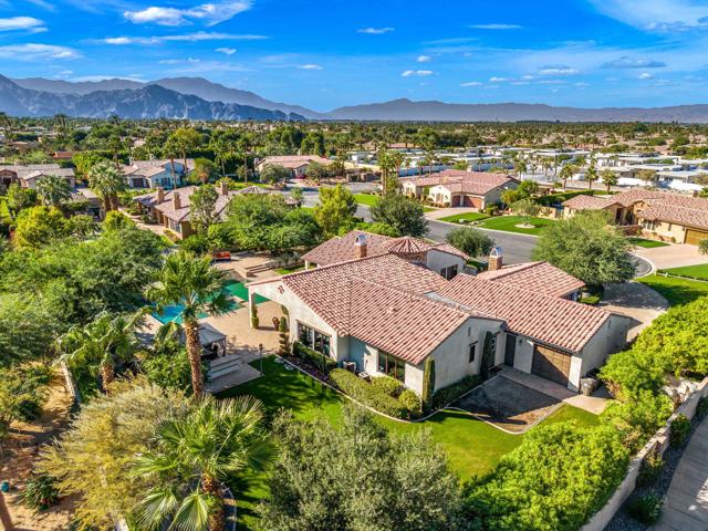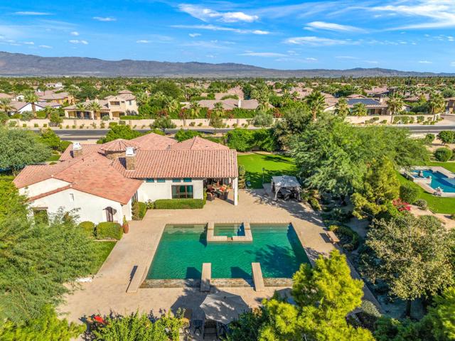 Experience the epitome of luxury living behind the gates of Stonefield Estates in South Indio's sought-after Festival Corridor. Ideally located within a short walk, drive, or bike ride from the Empire Polo Club--home to the iconic Coachella and Stagecoach Music Festivals. This stunning 4-bedroom, 4.5-bathroom home boasts 3,932 square feet of meticulously designed living space on nearly an acre of estate-sized grounds. Beyond its refined living spaces, the home's rare proximity to the festival grounds creates a compelling opportunity for supplemental income, as its expansive layout and resort-style ambiance are ideally suited for Peerspace bookings by brands and private groups seeking distinctive event settings.Perfect for entertaining both indoors and outdoors, the property offers a long driveway and two spacious 2-car garages, one of which opens directly to the private backyard--an ideal setup for car enthusiasts. The welcoming front courtyard, complete with a cozy fireplace, sets the tone for memorable gatherings during the holiday season and beyond. Step through the formal entryway with its impressive rotunda, leading to a grand living room adorned with soaring ceilings, clerestory windows, a fireplace, and doors that open to the south and west-facing backyard. Adjacent to the living room, the formal dining area features a butler's pantry and a stylish wine wall and cooler, secured behind an elegant iron gate.Culinary enthusiasts will delight in the gourmet kitchen, showcasing an oversized island, chic finishes, and top-of-the-line Sub-Zero and Wolf appliances. Just beyond the breakfast area, retreat to a covered patio offering breathtaking pool and mountain views. The adjacent barbecue island connects seamlessly to the expansive lawn, a destination in its own right. A series of tranquil waterfalls frame the saline pool and spa, creating a true resort-style experience. Inside, the bedrooms are thoughtfully positioned across separate wings of the home. The Primary Suite, with its private retreat, features direct patio access, expansive walk-in closets, dual vanities, a striking tiled shower, and a luxurious soaking tub. Junior Ensuite #2 offers charming courtyard views, while Junior Ensuites #3 and #4, each with their own private bath, are situated on the opposite side of the home. Ideally located near golf courses, restaurants, and retailers, this property truly has it all.