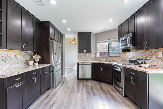 Welcome to 29634 Ramsey Court — a beautifully updated 4-bedroom, 3-bath, 1,856 sq. ft. home that blends style, comfort, and a touch of country charm. Step through the front door and be greeted by soaring vaulted ceilings and an abundance of natural light that instantly make the home feel bright and open. The new luxury vinyl plank flooring flows throughout, tying the spaces together with a modern, cohesive look. The updated kitchen is both functional and inviting, featuring granite counters and a walk-in pantry with a glass door. The adjoining family room stands out with a custom shiplap accent wall and warm wood mantel that create the perfect spot to relax or entertain. Upstairs, the spacious primary suite includes a walk-in closet, along with three additional bedrooms. Step outside to your private backyard oasis — complete with 14 fruit trees, berry bushes, a covered patio with an outdoor TV, new fencing, stamped concrete, and low-maintenance turf. There's even a charming chicken coop that adds personality and a touch of farm-to-table fun. Situated on a quiet cul-de-sac in the award-winning Temecula school district, this home has low taxes, no HOA, and is close to shopping, dining, and the area's world-famous wineries. Move right in and start enjoying the Temecula lifestyle today!