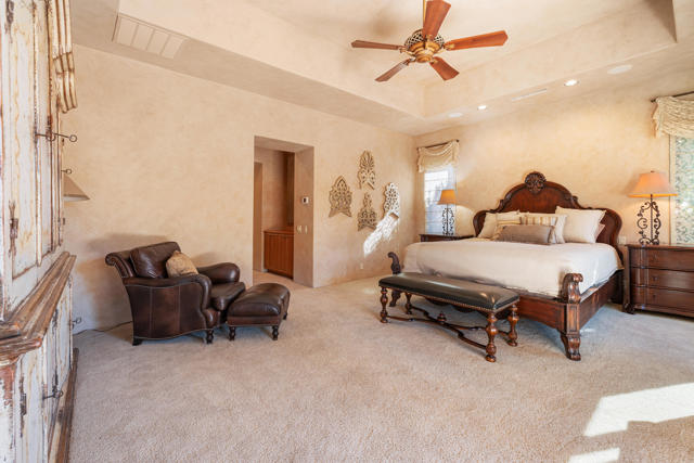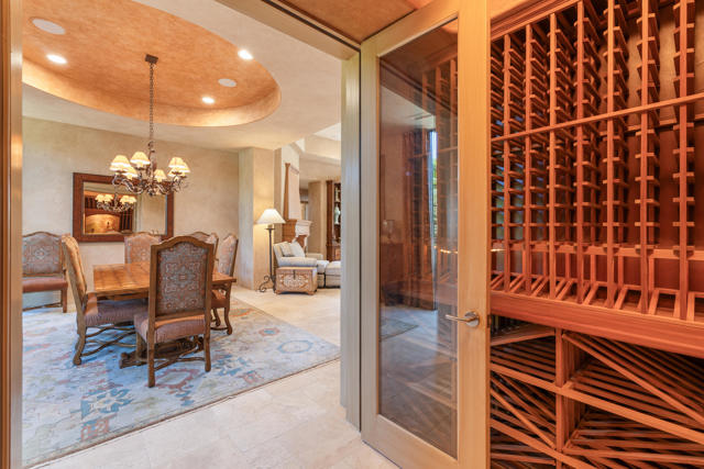 Built by renowned Ministrelli this outstanding home is one of the finest and best locations at Indian Wells Country Club within the prestigious Villaggio community. Light and bright California open floorplan and Tuscany design is quality built from start to finish! Spectacular Mountain Views directly south facing with walls of glass which disappear and open to large 422 Square Foot covered loggia with fireplace, beautiful pool and raised spa, and outdoor barbeque island. Fabulous Views and spacious indoor/outdoor living, this private home features 4632 Sq. Ft. of indoor living, 4 spacious Bedrooms with ensuite baths, 4.5 Baths, Great Room with fireplace, Formal Dining Room has adjoining impressive Wine room. Open Gourmet Kitchen boasts 2 islands with bar seating, 2 stainless steel sinks, Wolf appliances, and gorgeous granite countertops. Primary bedroom has fabulous pool and mountain views with French doors to direct access to loggia, pool/spa. Grand Primary Bath features dual sinks plus vanity, jet tub spa, and huge walk-in closet. Interior Design features include extensive use of granite and marble, faux and stenciled wall paint, art niches, built-in wood cabinetry, carpeted bedrooms, and gorgeous Versailles pattern travertine floors. Total of 3 car garages, with epoxy flooring and built-ins for extra storage. Elegance, Style, and Luxury!