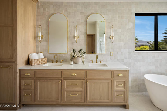 Warm, Refined, and Timeless SoCal Transitional Home Meets Family-friendly Design!Welcome to a truly one-of-a-kind, fully reimagined 5-bedroom, 4.5-bath luxury residence that has been thoughtfully crafted for discerning buyers who value high-end design, comfort, and function. Inside, the custom floor plan showcases expansive living spaces, raised door headers for an elevated aesthetic, and two luxurious primary suites -- one on each level -- ideal for multi-generational living or hosting guests.The designer chef's kitchen and beautifully crafted custom cabinetry throughout the home reflect a commitment to quality and timeless sophistication, while two separate laundry hookups add everyday convenience and practicality for busy households.Designed for seamless indoor-outdoor living, the main living area and upstairs primary suite both feature oversized bifold sliders that open to a private entertainer's oasis -- complete with a large stunning pool, built-in BBQ, and panoramic views. Upstairs, a generous deck off the primary suite provides a serene escape with stunning views, perfect for morning coffee or evening relaxation.From the designer tiles, custom plaster range hood, architectural elements inserted throughout, refined stone and smooth stucco exterior, every detail has been meticulously selected. Take comfort in knowing that nearly everything in this home has been replaced and modernized, including brand new Milgard windows, a new HVAC system and water heater, upgraded plumbing throughout the entire house, new rain gutters, and a newly replaced yard drainage system -- offering peace of mind and modern efficiency. Whether you're entertaining on the weekends or enjoying quiet family evenings, this warm and inviting modern masterpiece delivers the perfect balance of luxury, comfort, and lifestyle.