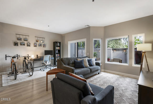 This spacious townhome-style condo offers two bedrooms, two-and-a-half bathrooms, and a thoughtfully designed layout with a seamless indoor-outdoor flow. The main level connects the entry, dining area, and living room, which includes a versatile space ideal for a home office or reading area. The living areas lead to a very large private patio surrounded by mature trees--creating a peaceful and scenic setting perfect for entertaining, relaxing, or gardening. The kitchen features plantation shutters, newly installed flooring and recessed lighting, and opens nicely to the dining area for easy everyday living. A half bath and in-unit laundry are conveniently located on the first floor. Upstairs, both bedrooms are comfortable suites with full bathrooms and walk-in closets. Additional highlights include new dual-pane windows, fresh interior paint, two secured parking spaces, a well-maintained complex with a BBQ area, and a controlled-access entry. Combining comfort, function, and convenience, this Pasadena home is move-in ready and offers the ideal setting for enjoying Southern California living--conveniently located near dining, shopping, the Metro, and easy freeway access.