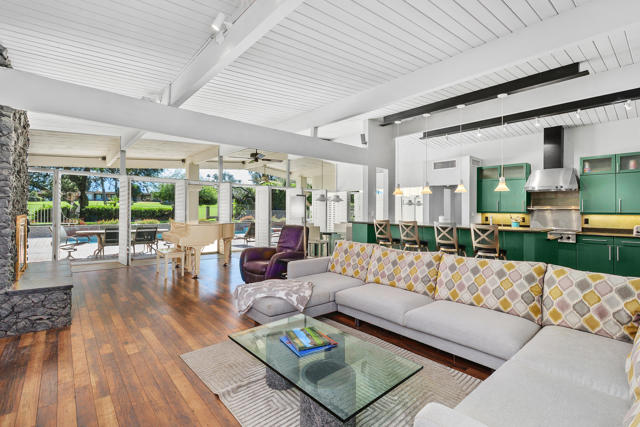 Your perfect seasonal escape awaits in this stunning mid-century modern home on the golf course at Bermuda Dunes Country Club. Built in 1960 and lovingly updated, it features 3 bedrooms and 3 baths in the main home, plus a fully remodeled detached casita for visiting friends or family. Enter into this original model home in Bermuda Dunes CC and notice the high beam ceilings, and ''floor to ceiling'' glass across the entire living/dining room showcasing the Santa Rosa mountains and the #2 Fairway of Classic 1. The living room features a Stone fireplace for those cool winter nights. The kitchen has all the most updated S/S appliances featuring double ovens, two dishwashers for loadsof entertaining, wine refrigerator and a coffee bar and pantry area. Primary bedroom is spacious with door leading to the pool/spa. Ensuite bathroom has dual vanities and a large updated shower. The Ensuite guest bedroom is also spacious. Third bedroom is currently used as a den. The casita/guest house is amazing! With a King size murphy bed, kitchenette with induction cooktop, refrigerator & small dishwasher. New Flooring, Shower, Vanity and Toilet were also updated. Outdoors, you'll find a large grassy yard ideal for pets and playtime, a sparkling pool and spa, and breathtaking southern mountain and golf course views. Back patio has a Patio bar with a misting system across the entire back side of the house. Two car garage has a 220 charger for your electric vehicle and epoxy coated floor. Designed for comfort and effortless living, this property offers resort-style relaxation, privacy, and a dog lover's back yard -- the ultimate Palm Springs area retreat.