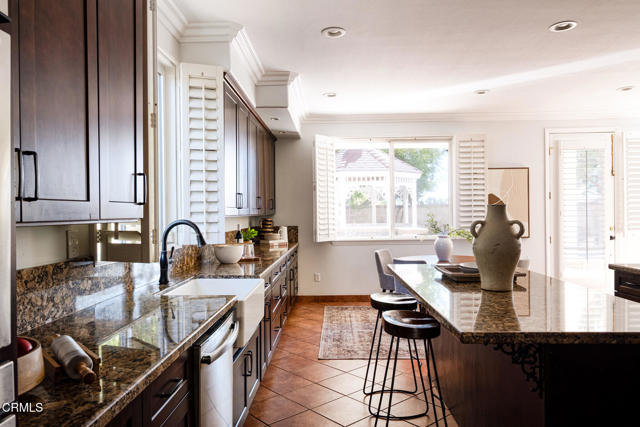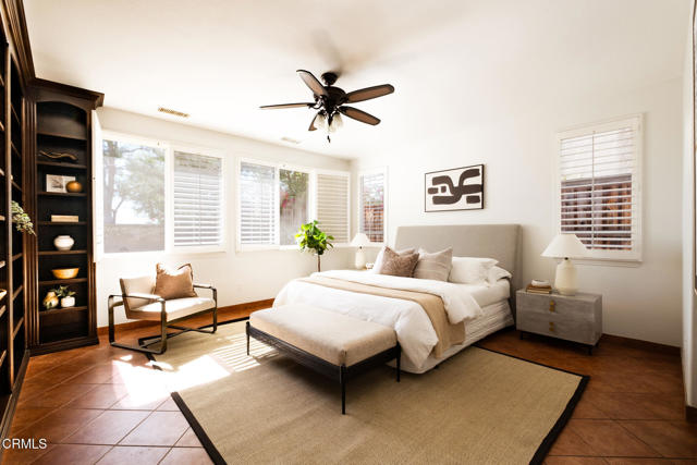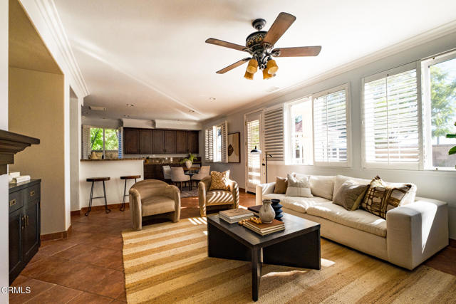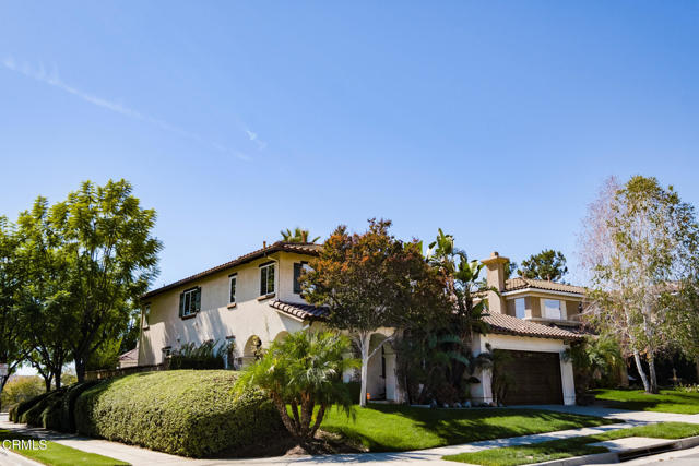 Welcome to this beautifully maintained four-bedroom, three-bath Spanish-style home nestled in a desirable neighborhood that exudes pride of ownership. Thoughtfully designed for comfort and convenience, this residence offers a spacious floor plan with the primary suite conveniently located on the first floor.Step through the formal entry into a bright and inviting living room with soaring ceilings and abundant natural light. The kitchen opens to the family room with a fireplace. The downstairs primary suite offers a spacious retreat has 2 generously sized closets, and a large en suite bathroom, dual vanities, a separate shower and tub. Upstairs, you'll find three additional bedrooms, one with a private balcony, one full bath, and a dedicated office space with built-ins perfect for working from home.The oversized garage provides direct home access and exceptional storage space, while the separate laundry room adds to the home's functionality, complete with a utility sink and lots of storage. Step out to a fully landscaped backyard featuring a patio, an outdoor kitchen, and a gazebo ideal for entertaining.Additional highlights include tile flooring throughout, plantation shutters, a tankless water heater, a dual air conditioning system, a water softening/filtration system, and fresh interior paint. Located near shops, restaurants, and conveniences, this home combines elegance, practicality, and location in one perfect package.
