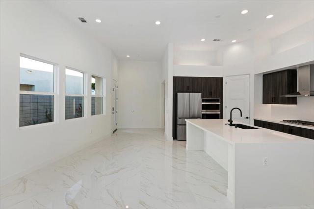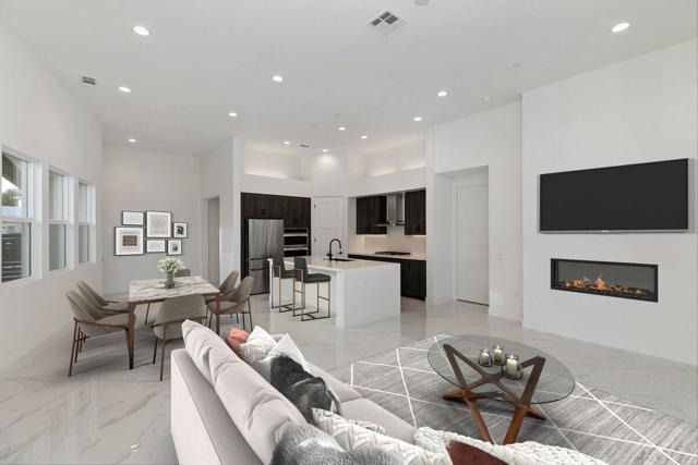 This stunning open great room Floorplan is 1,850 Sq. Ft. and has 3 Bedroom 3 Bath. Gourmet kitchen with kitchen Island for additional seating and entertaining, Quartz countertops, Slab Quartz Backsplash, LG Stainless Steel Appliances including Refrigerator, Gorgeous Porcelain Tile Flooring, Carpeting only in Bedrooms. Upgraded Tiled Showers, Bathroom Linen Shelving in Master, Soaring 12 '' Ceilings, Swimming Pool/Spa, Rear Yard Landscape & Solar included! Home is a Detached Condo, on Condo Map Map/PUD. Short Term Rentals Permitted.