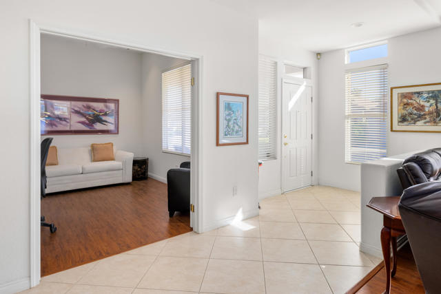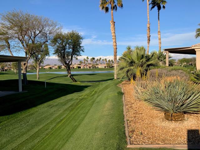 MOTIVATED SELLER - Light and bright, south facing Southampton plan located behind the gates in beautiful Heritage Palms CC. As you enter the home you are flooded with sunshine throughout and gorgeous mountain views off the back of the house. The home features 2 bedrooms plus a den that can be used as third bedroom, and two full baths. The spacious kitchen has been updated tile backsplash, new faucet, and light fixture. Carpeting has been removed and replaced with wood laminate flooring. The primary bath features dual vanities, soaking tub, and two large walk-in closets. The spacious back patio has ample space for dining and lounging. It's the perfect place to enjoy the beautiful mountain views and desert weather. The home has dual zoned A/C units, one was replaced in 2023. New water heater was installed as well. Washer and dryer were replaced in October 2025. The two car garage also has a golf cart garage space with storage cabinetry, and epoxy flooring throughout. Exterior has been painted, landscaping has been redesigned and sprinkler system has been reconfigured. Heritage Palms is premier adult community featuring an 18 hole championship golf course, indoor & outdoor pools, Pickleball & Tennis courts, fitness center, grill room, billiards room, card rooms, social clubs and more. Start enjoying your desert lifestyle today!