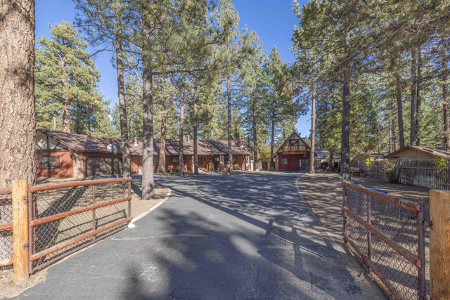 Welcome to your Big Bear getaway! This charming single-level ranch home sits on a roomy half-acre lot surrounded by mountain beauty. Enjoy peaceful mornings on the covered front porch or summer BBQs on the big back deck. The fully fenced yard is perfect for kids and pets to play safely. Inside, you'll find a warm and inviting space that's been lovingly maintained. The primary en-suite is spacious with its own wood burning fireplace and the sliding glass door leads to the redwood hot tub room to enjoy after a day on the slopes or mountain biking. Large living room and separate entertainment room with a bar and game area. The property also includes a separate two-story guest quarters offer excellent flexibility, featuring a full kitchen, bedroom, and bath on the main level, plus a large loft bedroom and additional bath upstairs--ideal for guests, extended family, or rental potential. There's plenty of room for all your toys with a 2-car garage and extra space for RV or boat parking. You'll love the convenient location just off North Shore Drive--close to hiking, biking, and horse trails in Holcomb Valley, and just a short drive to Big Bear Lake, shopping, and the ski resorts, providing easy year-round access.