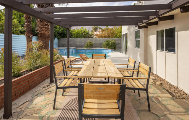 Charming 1937 Bungalow Near Downtown Palm Springs! Situated on a quiet street just minutes from downtown dining, shopping, and entertainment. This home showcases a beautiful river-rock, wood-burning fireplace at the center of the living room, great architectural character, and wonderful natural light throughout. Step outside to enjoy a private backyard retreat with a pool and hot tub, perfect for relaxing and entertaining year-round. Recent improvements include fresh exterior paint, updated interior paint, and an upgraded heat/furnace system, a solar system with backup battery for added efficiency, and overall improved comfort and performance. A rare opportunity to own a classic Palm Springs bungalow with charm, history, and a fantastic location.