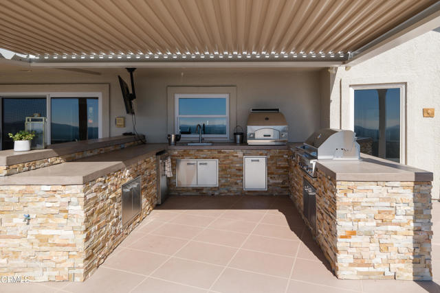 As you enter this serene enclave in the foothills of the San Gabriel Mountains, you feel the frenetic energy of the city below slip away. Impressive modern double doors open to reveal a light-filled, open floor plan and breathtaking views of the Los Angeles basin stretching all the way to Catalina Island. This entire property is designed with a seamless indoor-outdoor flow to take full advantage of those spectacular views and its privileged hilltop location in an area brimming with natural beauty, hiking trails, and wildlife. This tri-level home has been extensively remodeled. The living room and dining room feature cathedral ceilings, walls of wood-frame sliding glass doors, and hardwood floors. The tastefully designed kitchen is a chef's dream with custom cabinetry, quartz countertops, a copper sink, and premium stainless-steel appliances. An open floor plan connects the kitchen to a comfortable family room, highlighted by a coffered wood ceiling and stone fireplace. The family room opens onto a sprawling entertainer's deck, offering views that have to be experienced in person. This luxury outdoor living space boasts a motorized louvered pergola, outdoor kitchen with a built-in barbecue, refrigerator, and even a LYNX Napoli pizza oven for sunset pizza parties. A discreet elevator takes you from the main floor to the upper floor, where you'll find the gorgeous, expansive primary suite with glass doors leading to an upper deck with breathtaking views. This fully remodeled retreat includes a stunning stone fireplace and a spa-like bathroom with a vast marble shower with rain shower heads, a heated floor, walnut cabinetry, double sinks, and a walk-in closet. A second en suite bedroom completes the upper floor.The lower level features three additional en-suite bedrooms, with sliding glass doors leading to the lower deck, which offers sweeping views of the valley.Practical luxuries throughout keep life organized, comfortable, and healthy. A dedicated laundry room includes a newer washer and dryer. Environmental controls include a three-zone heating and air conditioning system, alarm, water filtration, a water softener, solar panels, two Tesla Powerwalls, and a Level 2 10 kW EV charger in the garage. The exterior is freshly painted.This stunning sanctuary offers a rare blend of natural beauty, world-class vistas, and easy proximity to Pasadena, Burbank, and LA.