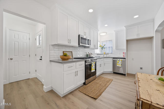 What's not to love about this charmingly, beautiful Traditional home located in a wonderful part of Bellflower? This home has been in the same family since 1951! Completely remodeled and lovingly updated by the owner, this house boasts everything you're looking for, truly! The spacious living room is warm and inviting, and that's just the beginning. There is a sweet formal dining room as well and a brand new kitchen you will love spending time in. The bedrooms are spacious with good storage and the bathrooms are both beautiful with quartz counters, new vanities, sinks, hardware and toilets. The primary bedroom has a wonderful walk-in closet and sliding glass doors to the sweet rear covered patio area. The yard is quite private and spacious with lots of fruit trees some of which are orange, lemon, guava, pomegranate and a productive avocado tree! The roof on the house and the garage is brand new with a 50 year warranty. There is also a brand new HVAC system, water heater, screens, interior doors and hardware, new lighting and fresh paint inside and out. The gated driveway provides a spacious area in front of the finished garage. The cabinets in the garage were made by the original owner back in the 50's. What a great place to call home.