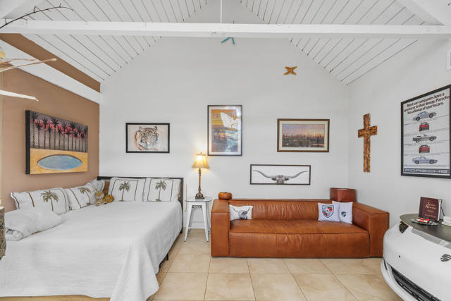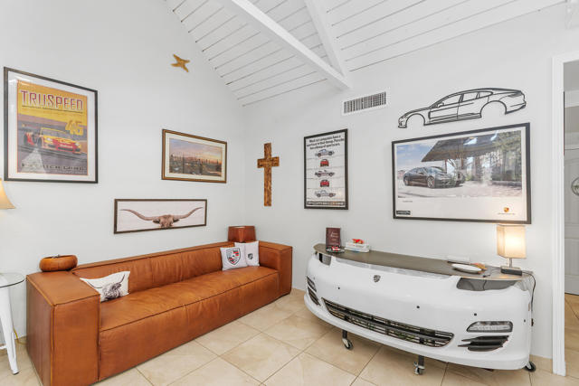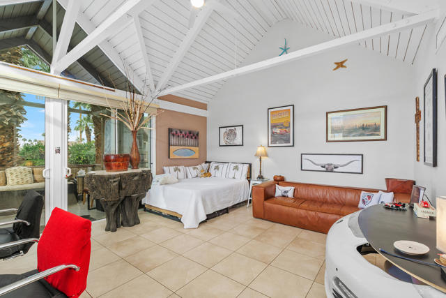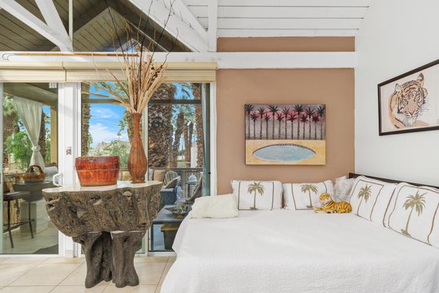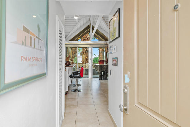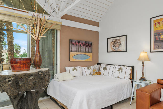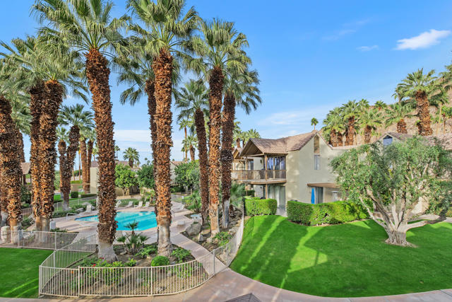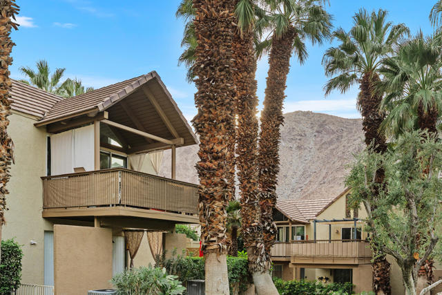 Beautiful Mountain Cove Condo! This second story condo offers vaulted ceilings with exposed beams and mountain views! Enjoy the open flow to your covered patio as additional living space with mountain views and palm trees. Overlooking one of the three pools. Full remodeled kitchen including new Samsung fridge and oven with additional features like air frying! New dishwasher, hot water heater, and interior laundry! Redone bathroom with stone counters and stylish shower with skylight. Tile floors and large windows with sliding doors to let in lots of light and fresh desert breeze. Great additional office area off of the kitchen for at home work. Mountain Cove located in Indian Wells and close to both shops and restaurants of La Quinta and popular El Paseo. Take advantage of the Indian Wells Resident Card with benefits including Discounted Golf at the Indian Wells Golf Resort ($35 May-Dec + $50 Jan-April), Complimentary Access to the Hyatt Regency Gym, 20% Hotel and Restaurant Discounts, and Free Tickets to the Indian Wells Tennis Gardens!! Low $264 monthly HOA includes 3 community pools, landscape, building maintenance, water, and guard gated security. Plus 7 Day Short Term Rentals!