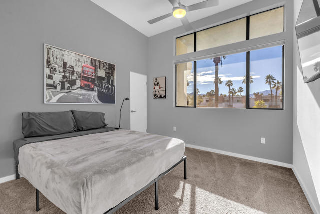 Welcome to your Palm Springs escape in the highly sought after Biltmore Colony, a gated community filled with style, color, and that unmistakable mid century vibe. Located just a mile from downtown, this two bedroom two bathroom condo blends modern comfort with classic Palm Springs living, offering spectacular Mountain Views and the perfect backdrop for morning coffee or sunset evenings from your private patio.This home is filled with natural light from expansive windows that frame the mountains beautifully creating a bright airy feel throughout. The upgraded kitchen features stainless steel appliances and sleek finishes making it ideal for both cooking and entertaining. The bedrooms sit on opposite sides of the condo offering privacy for guests or a peaceful retreat after a long day in the desert sun. Inside laundry and a two car garage add convenience to the easy living lifestyle this property offers. Additional upgrades include a brand new AC unit and a new tankless water heater giving you efficiency comfort and peace of mind.This property is currently an active short term rental and is booked out for the next few months making it an incredible investment opportunity for anyone looking to step into the thriving Palm Springs rental market.The Biltmore Colony is known for its stunning design inspired by classic Palm Springs architecture with vibrant community spaces resort style pool areas cabanas and a fitness center. Enjoy fee land low HOA fees and a location that places you minutes from award winning restaurants trendy coffee shops hiking trails and all the excitement of Palm Canyon Drive.If you have been dreaming of owning a stylish Palm Springs getaway or an income producing investment property this condo truly has it all. Message me for a private tour and come experience the magic of the Biltmore Colony for yourself.