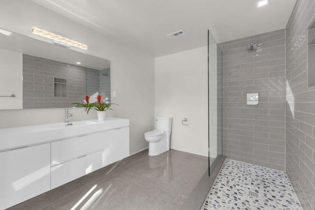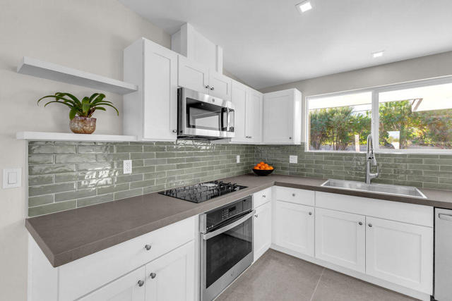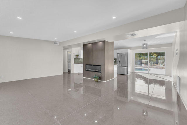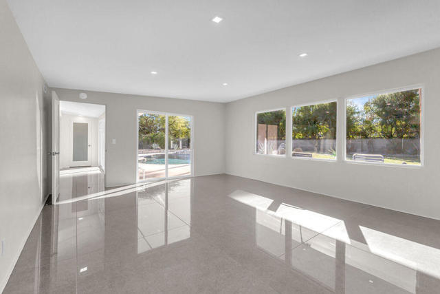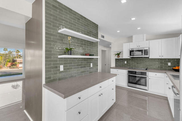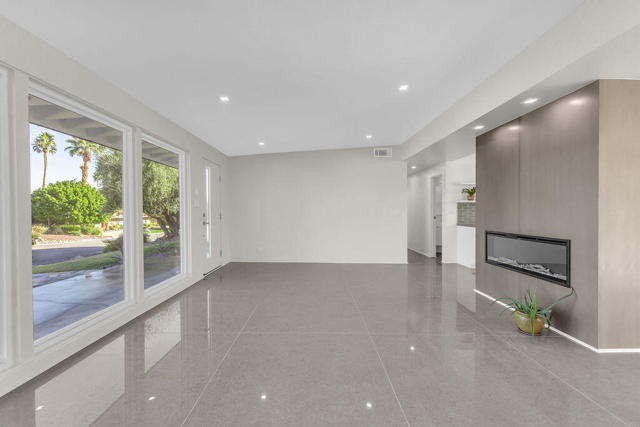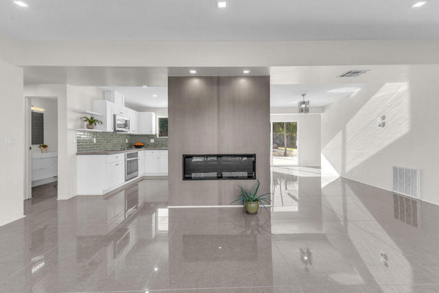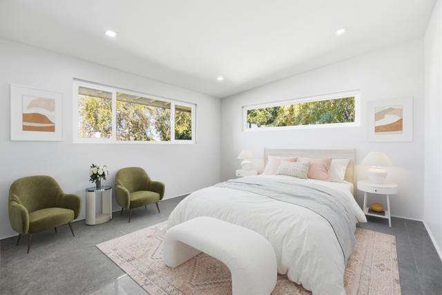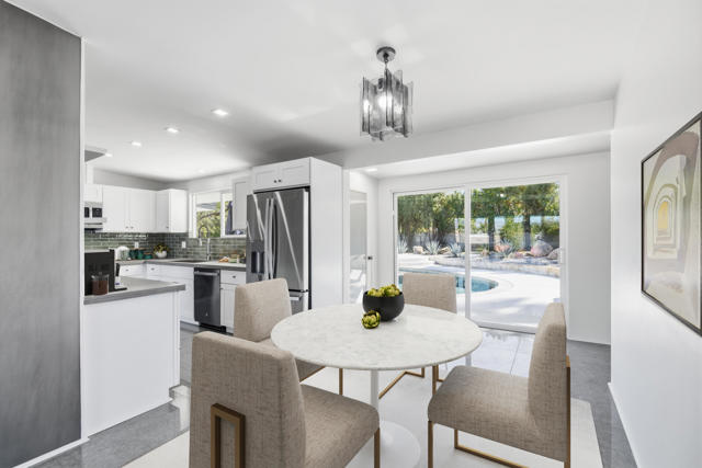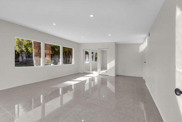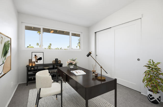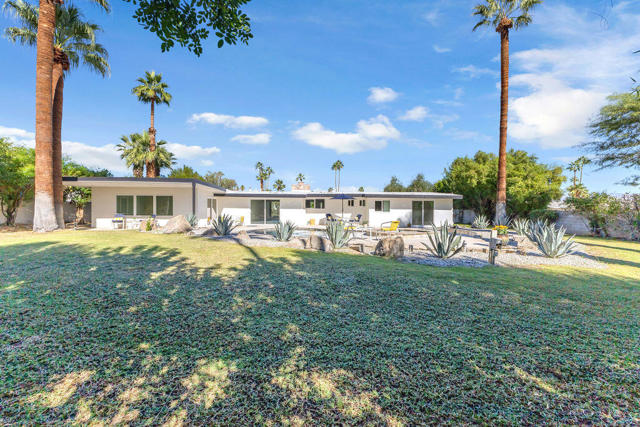 A rare find! This stylish 1957 mid-century home sits on more than a third of an acre on one of the best streets in south Palm Desert. The home has just been extensively remodeled and is ready for your cool furnishings! The seller is amenable to owner financing with reasonable terms as an option. .Large brand-new double-pane floor to ceiling windows span the living area allowing for a spectacular view to the north. The floors throughout the home were just re-done with large 48 inch grey porcelain tiles. Other elegant finishes include quartz countertops, beautiful kitchen and bathroom tile, and all-new appliances. There are 3 bedrooms off the main living area and a large, permitted bedroom/bonus room on the other side of the home which was part of a later addition and has its own entrance door. The huge walled-in private backyard has gorgeous mountain views to the south and west. A sparkling pool and raised spa, and spacious patios, are a great place to relax and entertain. There is plenty of room for a potential outbuilding too. There is also a very large two-car garage. Prices are on the rise in this popular neighborhood with its proximity to El Paseo, College of the Desert, golf course and numerous fine restaurants and shopping.