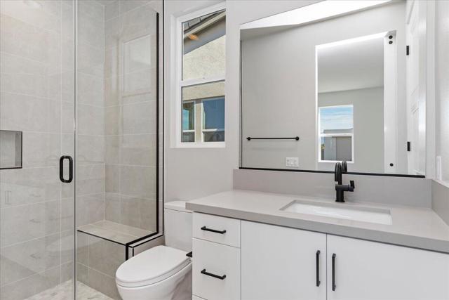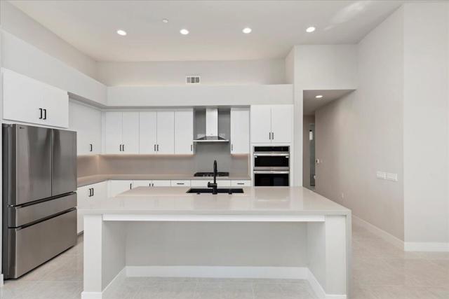 This spacious Plan 1 boasts 3 Bedrooms 3 Baths, Gourmet Kitchen with LG Stainless Steel Built-In Appliances, Refrigerator included, Quartz Countertops, Full Kitchen Backsplash, Porcelain Tile Flooring, Carpeting just in Bedrooms, Swimming Pool & Spa, Rear yard Landscaping & Solar System included!!! Solar System is owned by Buyer. You own it!! This Home is a Detached Condo on Condo Map.