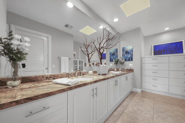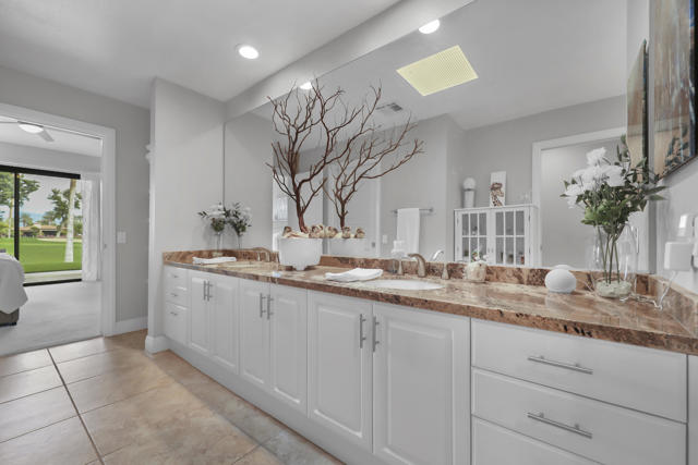 Golf Course Views! Mountain Views! Private courtyard! Looking for a beautifully updated home on the golf course with majestic mountain views in the fabulous Indian Wells Country Club? Look no further, because you have found it! Tastefully furnished, large back patio with misters, three bedrooms with their own sliders, a private courtyard, and all three baths have double sinks for family and friends to stay and enjoy this lovely home on the 18th green of the Cove Course. All of the big ticket items have been recently replaced including the A/C units, the dual paned sliders, both water heaters, the kitchen appliances, and the washer/dryer, and the quality furnishings come with the place, making it move-in ready. The two car plus golf cart garage is another bonus as well as the benefits this generous city allows its residents to enjoy including discounts at the spas, restaurants, and hotels in Indian Wells.