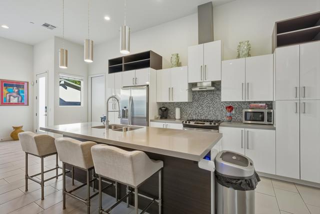 Welcome to 52085 Avenida Herrera, a contemporary desert masterpiece located in the sought-after La Quinta Cove--home to world-class hiking trails, breathtaking mountain scenery, charming parks, the farmer's market, and the vibrant shops and dining of Old Town La Quinta. Built in 2016 with quality construction and refined finishes, this residence blends modern design with the tranquility of desert living. Soaring 12-foot ceilings and expansive windows fill the great room with natural light, creating an open and inviting environment perfect for relaxing or entertaining. The private gated courtyard is a true retreat, featuring a sparkling pool and spa surrounded by beautiful mountain views that embody the peaceful ambiance La Quinta is known for. The chef-inspired kitchen includes white ceramic porcelain tile floors, sleek quartz countertops with a breakfast bar, and top-of-the-line stainless steel appliances. Each spacious bedroom features 10-foot ceilings, mirrored sliding closets, and plush Berber carpeting for added comfort. The primary suite offers a generous walk-in closet, while the bathrooms showcase custom tile work and brushed nickel finishes for a clean, contemporary look. Offered furnished per inventory and ready for immediate enjoyment. Home is pre inspected with a full home inspection report available for your review.