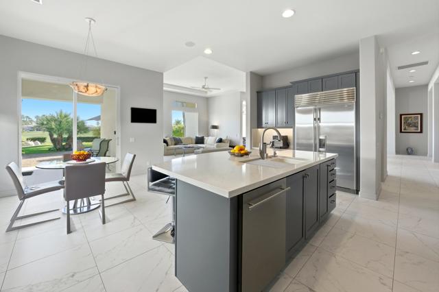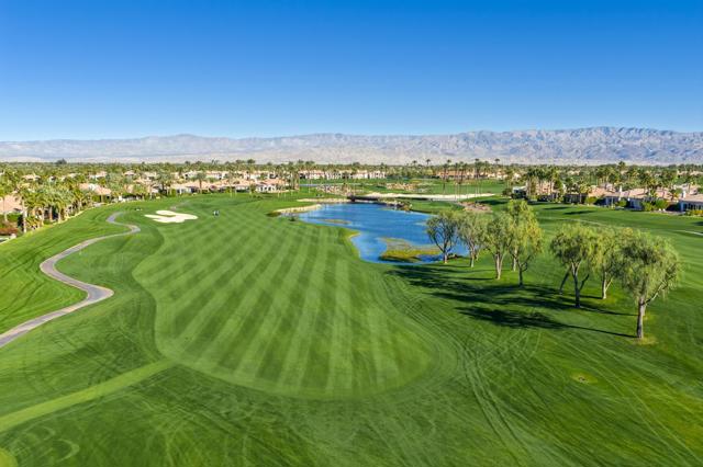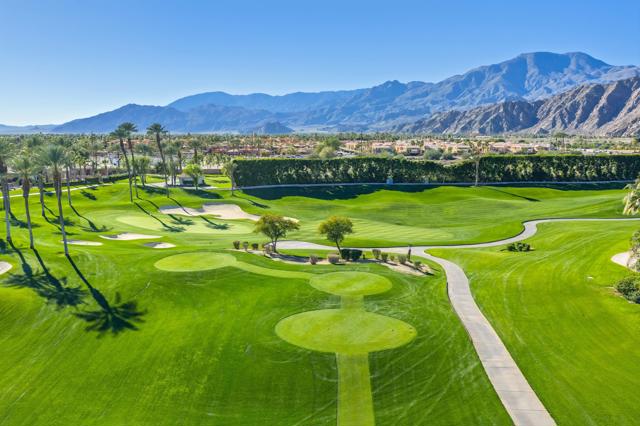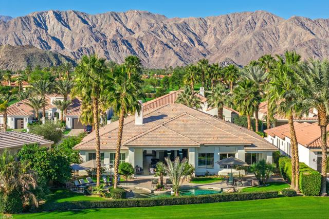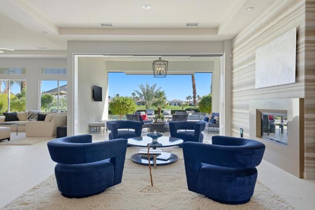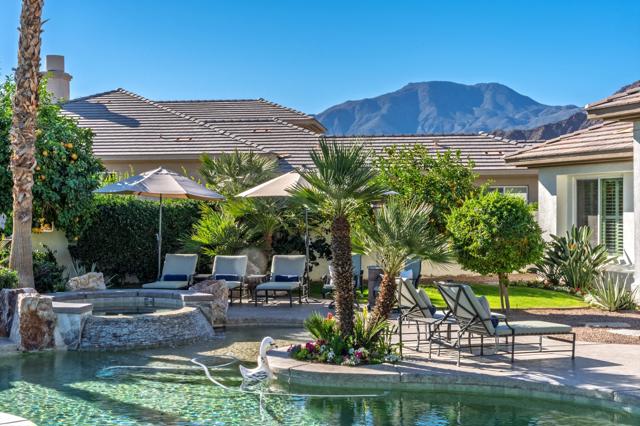 OPEN HOUSE SATURDAY 3/21 FROM 12:00 - 2:00 PM. HUGE PRICE REDUCTION - Don't miss this opportunity! Welcome to an elegant desert sanctuary offering refined living, exceptional privacy, and breathtaking views. This beautifully reimagined residence includes a bonus room ideal as a den, executive office, or easily made into a 4th bedroom and is thoughtfully designed for both sophistication and comfort.The remodeled living space showcases clean lines and elevated finishes, creating a seamless blend of style and functionality. At the heart of the home, the chef's kitchen has been expertly renovated with Wolf appliances, custom details, and an open-concept design that flows effortlessly into the main living areas--perfect for elevated entertaining.Retreat to the spa-inspired bathroom, where luxurious finishes create a calming, resort-like experience. Positioned on an expansive 13,000 sq ft lot, the property captures stunning mountain and lake views overlooking the 13th hole, offering a dramatic yet serene backdrop to daily living.Truly indoor/outdoor living - just open the expansive door and enjoy the amazing views. The outdoor living is exceptional. The expanded covered patio serves as a sophisticated entertaining space and transforms into an unforgettable outdoor movie-night retreat. The expansive backyard is ideal for hosting gatherings, while the private front courtyard provides an intimate setting for quiet evenings and morning coffee.Additional highlights include a separate golf cart garage and Tesla charger, enhancing both convenience and lifestyle appeal - plus 3 Air Conditioners and washer/dryer replaced in 2025. Peaceful, private, and impeccably appointed, this home embodies luxury desert living at its finest--perfect for refined entertaining and relaxed enjoyment with family and friends.