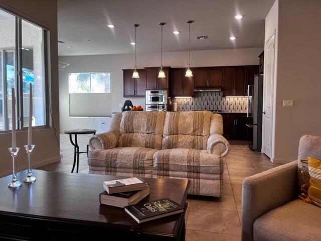 Great 55+ adult community. 'Like New' upgraded home At Sun City Shadow Hills by Del Webb. Phase 3. with 10 feet ceilings with fans. three bedrooms 2baths. En suite with sliding door to rear patio. Large open kitchen with staiinless steel appliances . Laundry room with additional cabinets. Remotely control custom blinds. 2 foot garage extension. tile throughout, except bedrooms with new carpet. Large backyard with trees. Two clubhouses, pools, spas, tennis, pickleball courts ,fitness centers and access to two championship golf. Large lot, room for pool.