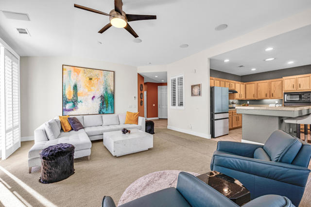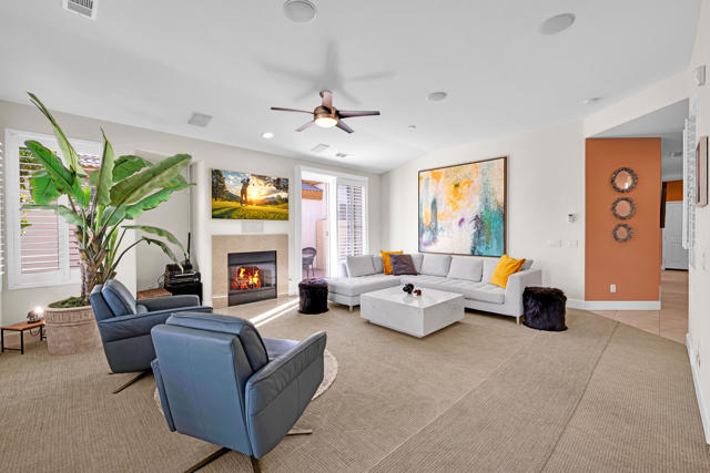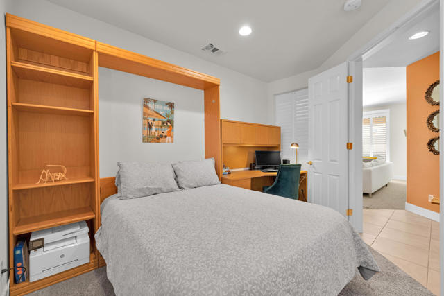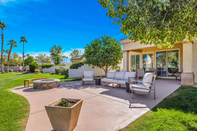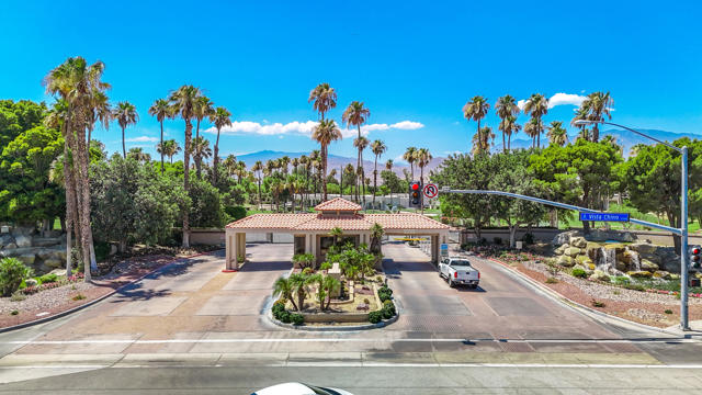 Exceptional value at Desert Princess Country Club. The seller purchased this home for $480,000 in 2021 and invested over $100,000 in upgrades, now offered at $485,000, creating a rare opportunity for buyers seeking a move-in ready golf course property with improvements already completed. This beautifully maintained home overlooks the 8th hole of the Cielo Course and features OWNED SOLAR with BATTERY backup Powerwall and outlet for an EV charger for energy efficiency and peace of mind. Recent improvements include plantation shutters throughout, new carpeting, extended back patio and side patio with gas-plumbed fire pit, enhanced surround sound, and a Frame TV. The refreshed kitchen includes a new dishwasher and refrigerator. The flexible floor plan offers a private visitor's suite with en-suite bath, a bonus room ideal for an office, fitness space or additional sleeping area, and a third bedroom currently used as an office with a Murphy bed. Outdoor living is enhanced by expanded patios and a mature grapefruit tree, and the home is conveniently located just one door from the closest pool and spa. Offered furnished per inventory for an easy move-in or rental setup. Desert Princess residents enjoy a resort lifestyle with multiple pools and spas, tennis and pickleball courts, a renovated fitness center and spa, EV chargers, and an on-site restaurant. Golf enthusiasts enjoy discounted access to the 27-hole championship course with no initiation fees or tee-time lotteries, consistently recognized by Golf Digest among the best in the valley. The HOA delivers exceptional value including high-speed internet, two cable boxes with HBO and Showtime, grounds maintenance, exterior pest control upon request, and irrigation, all within a 24-hour guard-gated community. HOA-approved short-term rentals offer added flexibility for owners and investors, inquire with the city for permit process. Land lease extended through 2069 at $1,368 per year. Just minutes from Palm Springs dining, shopping and entertainment.