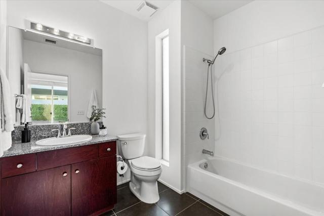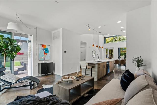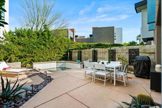 Welcome to 250 Enterprise Way, a beautifully staged Model A residence situated within the gated Palermo community of Palm Springs.This is the largest and most sought-after floor plan in the neighborhood, featuring two bedrooms, a spacious loft, two and a half bathrooms, and 1,387 square feet of bright, open living space designed for contemporary desert living.Positioned as a private end unit with the front entrance facing south, the home boasts an expansive backyard retreat equipped with a private sparkling pebble-tec spa, complete with newly installed pumps, ideal for indulging in the Palm Springs lifestyle. An outdoor misting system encircles the entire patio, creating a tranquil setting conducive to entertaining, relaxing, and enjoying warm summer evenings under the stars.Inside, high ceilings and abundant natural light cultivate an airy and welcoming atmosphere throughout. The home has undergone thoughtful renovations, including a remodeled kitchen, brand-new carpeting, and a refreshing interior paint palette that harmonizes the space aesthetically. The open living and dining areas seamlessly flow into one another, rendering the home both stylish and comfortable.Paid solar (6kw), a paid soft water system, and a newer air conditioning system enhance the home's efficiency. The upstairs loft offers flexible utilization as a home office, media space, or guest retreat, providing some of the most exceptional mountain views within the residence.A one-car garage, rare additional driveway parking, and proximity to guest parking enhance the home's everyday convenience.Located directly across from the clubhouse, Palermo is renowned for its contemporary architecture, resort-style ambiance, and prime Palm Springs location.This presents an exceptional opportunity to acquire one of Palermo's most desirable layouts and truly experience the Palm Springs lifestyle.
