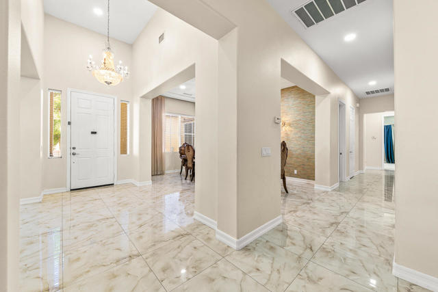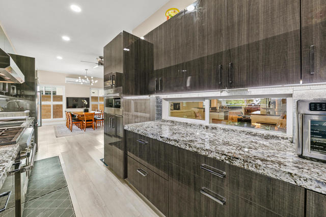 This is one of those homes that truly adapts to real life. Located in one of North La Quinta's most established and desirable neighborhoods, this beautifully upgraded residence offers a rare blend of comfort, flexibility, and thoughtful design, all in a setting that feels welcoming from the moment you arrive. A long driveway, mature landscaping, fruit trees, and inviting courtyard spaces create an immediate sense of home. Inside, the layout is both elegant and incredibly functional. Formal living and dining rooms provide polished spaces for holidays and special gatherings, while the expansive great room is perfect for everyday living--open, bright, and filled with natural light. High ceilings and a seamless flow throughout the home create a feeling of openness without sacrificing warmth.One of the home's most exceptional features is the dual-kitchen configuration, a true rarity in the La Quinta market. The main kitchen is a chef's dream, custom built with high-end appliances, a convection oven, extensive special-order cabinetry, and exceptional storage, ideal for entertaining and serious cooking. A second full kitchen adds incredible versatility, perfect for multigenerational living, extended guests, catering, baking, or additional prep space. Please note: the stove, oven, and refrigerator in the second kitchen are not included.Over $350,000 in upgrades are felt throughout the home, including more than $30,000 in upgraded flooring, designer wallpaper, and carefully selected finishes that elevate every space. Spacious bedrooms offer comfort and privacy, while multiple flex rooms easily transform into home offices, studios, fitness areas, or guest suites. A private office with its own exterior entrance is ideal for remote work, an in-home business, or private guest quarters. Outdoor living is just as inviting, with paver patios, courtyard-style spaces, and established landscaping designed for relaxing or entertaining year-round. Dual air conditioning systems ensure efficient comfort in every season. Conveniently located near parks, walking paths, golf, shopping, dining, Old Town La Quinta, and highly regarded IB schools within Desert Sands USD, this home delivers both lifestyle and location. With its rare dual kitchens, flexible floor plan, extensive upgrades, and prime North La Quinta setting, this is a home designed for the way people live today--beautifully, comfortably, and with room to grow.