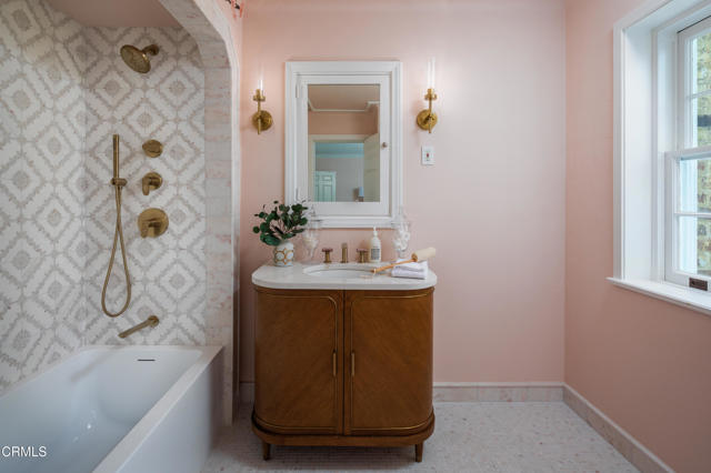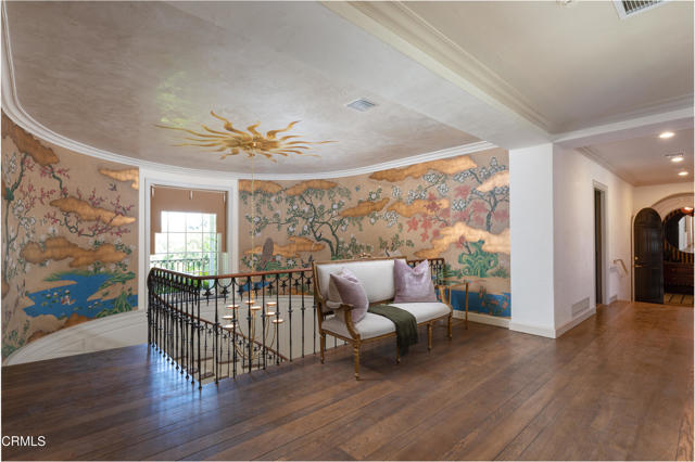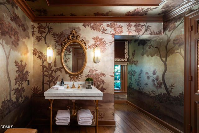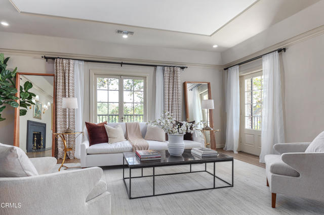 The finest work of renowned architect Reginald D. Johnson, this majestic 1928 Monterey Colonial estate is set on five acres in the heart of Pasadena.The Bauer/Cannell Estate & Gardens represents the union of architectural and horticultural artistry. .Owned by only two families over its 96-year history, the estate was designated in the City of Pasadena survey of Historic Gardens and is recognized as a contributing property in the proposed National Register Historic District. Most recently, the property was selected as the 2025 Pasadena Showcase House of Design in which 30 top designers remodeled and redesigned the estate for a month-long celebration of philanthropic events.The estate's grounds unfold like a private park, with sweeping lawns and paths through stately oaks, olive trees, and rose gardens. The main terrace overlooks a sparkling pool and pool house, while a canopy of trees opens to a north-south tennis court below. A sweeping circular drive leads to a motor court with a ten car garage and guest house. Inside, the residence offers 18 grandly scaled rooms, ten of which feature wood-burning fireplaces. Original architectural details have been beautifully restored alongside thoughtful modern updates. Steeped in history yet designed for gracious living, the Bauer/Cannell Estate & Gardens stands as a landmark of Pasadena's architectural and cultural heritage,a once-in-a-generation offering in one of the city's most distinguished neighborhoods.