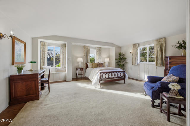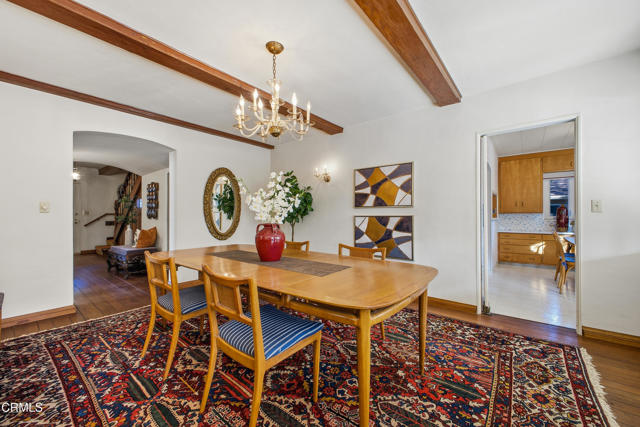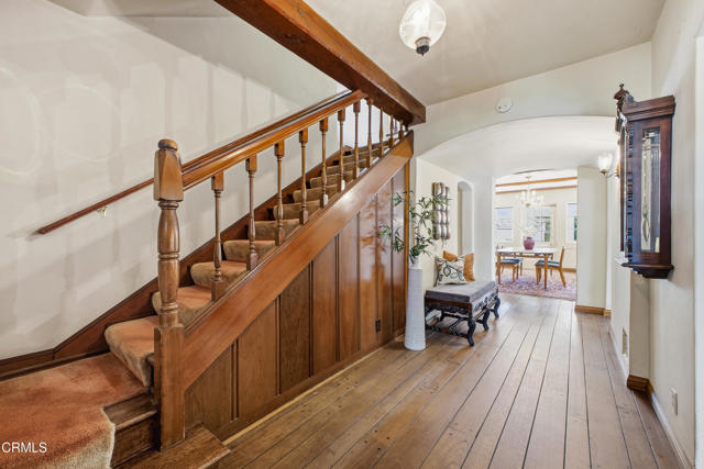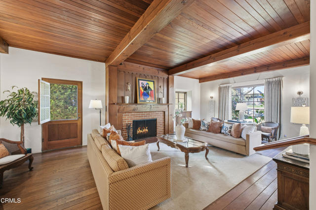 This timeless Pasadena gem, cherished by the same family for over 70 years, is brimming with character and classic charm. From the moment you step inside, you'll be captivated by the craftsmanship and original details that make this home truly one-of-a-kind. Gleaming hardwood floors, beamed ceilings, leaded glass windows, and elegant arched doorways create a warm and inviting ambiance throughout. The grand living room, anchored by a stately fireplace, makes for an inviting space for gatherings. A formal dining room and separate breakfast room, each with their own access to the backyard, make entertaining seamless. For those cozy evenings, a paneled den with its own fireplace is a great place to unwind after a long day. Completing the main floor is the kitchen with plenty of cabinets, a separate laundry room, an ample sized bedroom, and full bathroom. Upstairs, the primary suite is a true retreat, complete with a spacious dressing area, plentiful closets, and an ensuite bathroom adorned with charming vintage tile. Three additional generously sized bedrooms and a full hallway bath ensure there's plenty of room for everyone. The 5th bedroom offers versatility as an office or playroom. The outdoor spaces are equally enchanting. A grand covered patio overlooking the garden is an ideal setting for barbecues on a warm summer's night. A detached two-car garage features two additional rooms, perfect for storage or a garden workshop.