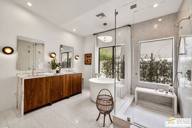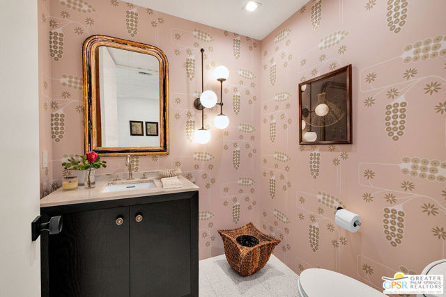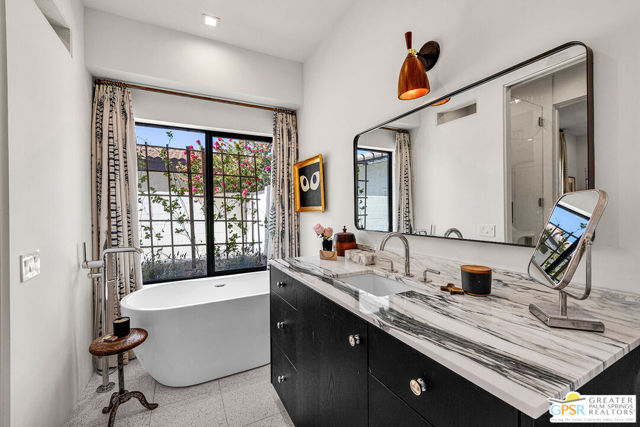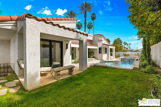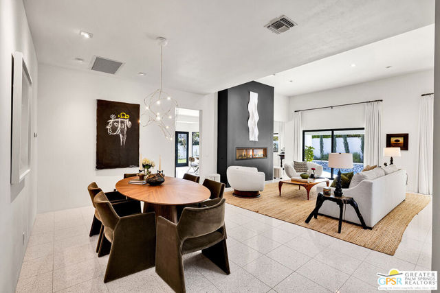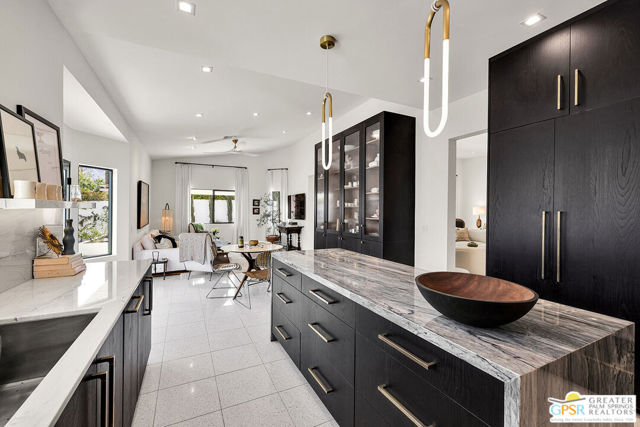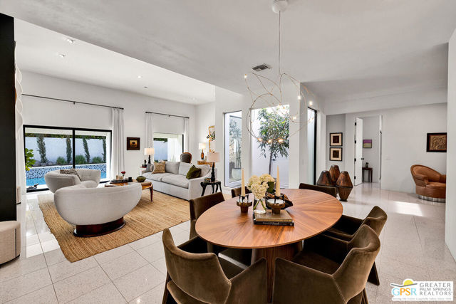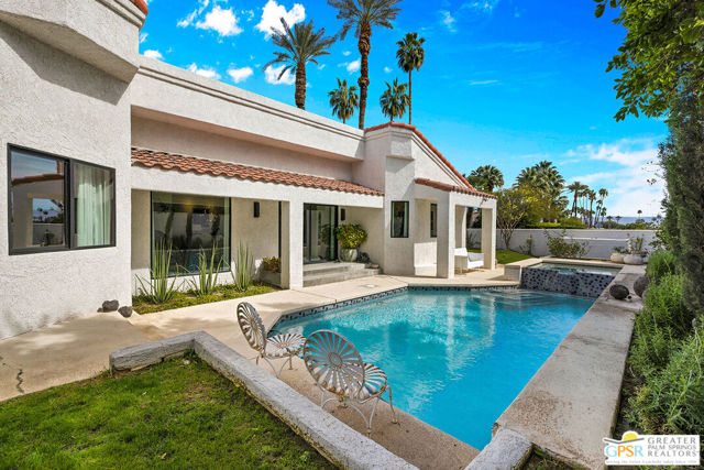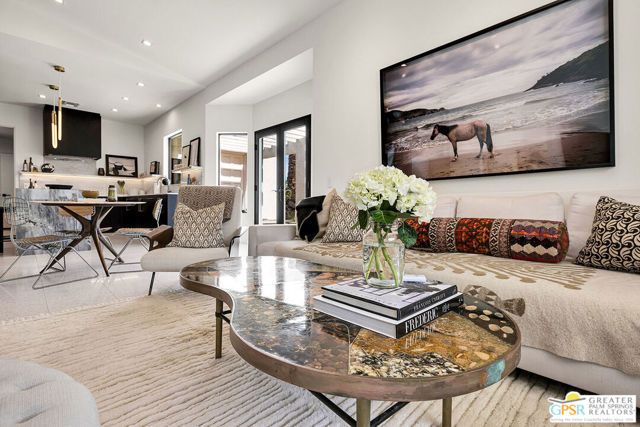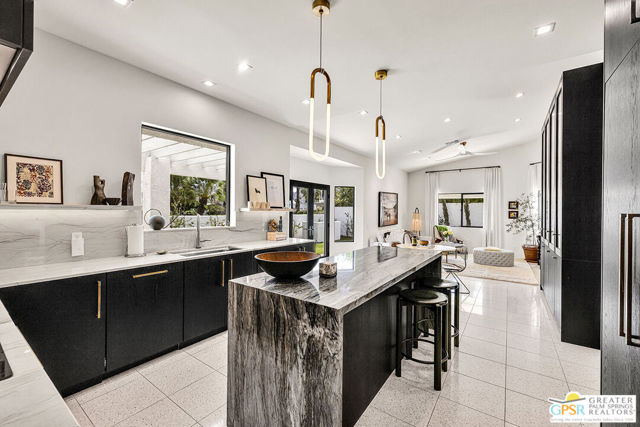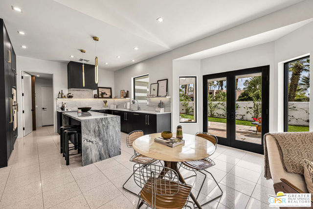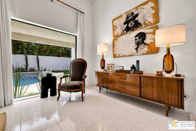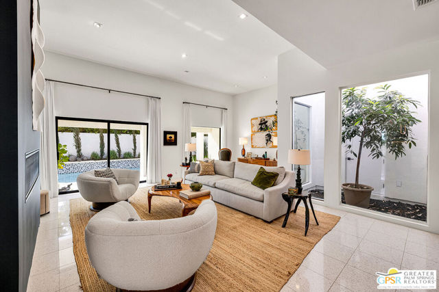 Welcome to 75465 Montecito Drive in the highly sought-after Rancho Palmeras community of Indian Wells, a beautifully reimagined 4-bedroom, 3.5-bath home offering 2,924 square feet of sophisticated desert living where architectural character meets modern luxury. A dramatic 9-foot custom walnut door opens to terrazzo tile floors and a signature atrium that fills the home with natural light, while perfectly placed windows and sliders create seamless indoor-outdoor flow to the sparkling pool and spa to create your own private retreat. The chef's kitchen impresses with striking quartzite slab countertops, custom floor-to-ceiling cabinetry, a bespoke display cabinet with wine fridge, and thoughtfully curated designer lighting. Spa-inspired bathrooms feature marble countertops, premium Waterworks fixtures, and a tranquil Japanese soaking tub, and the serene primary suite welcomes soft morning light and peekaboo mountain views. Meticulously redesigned by Chris Barrett Design, this sophisticated home offers timeless style and an exceptional opportunity in one of Indian Wells' most desirable neighborhoods. Contact agent for a private showing.