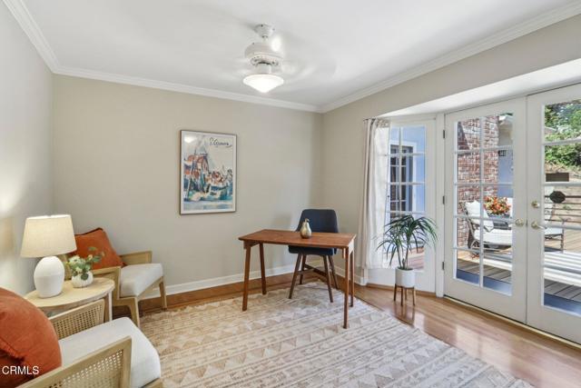 Experience the ultimate in hillside serenity in the heart of the prestigious Linda Vista neighborhood. This gated, single-level sanctuary offers a rare blend of majestic scale and absolute seclusion, tucked away on a sprawling lot of over 20,000 square feet. The experience begins the moment you pass through the private gates, where a long, stately driveway winds past a tranquil waterfall and shimmering pond, washing away the pace of the outside world. Surrounded by lush, mature landscaping, the home is perfectly positioned to provide a sense of intimacy and 'away-from-it-all' peace.The heart of the home is a celebration of its breathtaking surroundings. The expansive living and dining room, anchored by a classic brick fireplace and rich hardwood floors, features soaring vaulted ceilings that amplify the natural light. Dramatic French doors serve as a frame for the serene, rolling hillside views, opening directly onto a wide viewing deck. Whether hosting an elegant sunset gathering or enjoying a quiet morning coffee, the backdrop of the hills creates an ever-changing masterpiece of light and shadow. The seamless flow leads to an adjoining family room, complete with a second fireplace--ideal for intimate entertaining.The primary suite is a true escape, boasting its own vaulted ceilings, custom built-ins, and a third fireplace for ultimate comfort. While the suite offers a restful atmosphere, its direct access to the deck allows you to step out and breathe in the fresh air at a moment's notice. The kitchen, opening to the living and dining room, is equipped with newer stainless steel appliances, tile counters, and a charming breakfast nook for casual mornings.The exterior grounds are a rare luxury of space and privacy. Wander along winding garden pathways, relax in the secluded spa, or enjoy the soft green expanse of the grassy yard. Additional features include central air, a dedicated laundry room, and an oversized two-car garage with a generous workspace. While you may feel like you are in a private resort, you are perfectly positioned for the best of Southern California living, with immediate proximity to the iconic Rose Bowl, the world-class dining and shopping of Old Town Pasadena, and effortless access to major freeways. This is more than a home; it is a hidden hilltop haven.