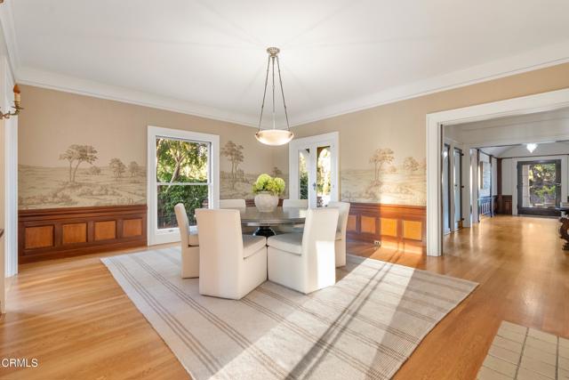 Welcome to the G.W. Stimson House - a historic, Italian Revival treasure in South Pasadena's prized Oaklawn Historic District. If the home's elegant design seems familiar, it's because renowned architect G.L. Stimson conceived it as a smaller-scale interpretation of his 1909 masterpiece, the Wrigley Mansion (Tournament House). Both properties were built by Stimson's father, G.W. Designated as a South Pasadena Centennial Heritage Home and offering significant property tax savings through its Mills Act status, 203 Oaklawn Ave is a celebration of old-world craftsmanship and timeless beauty. Exquisite curb appeal, a deep, covered front portico, and a distinguished facade establish an immediate sense of classic elegance. Inside, rich mahogany trim, handsome built-ins, and wrought iron detailing bask in the glow of abundant natural light. Whether hosting intimate gatherings or gala events, the home's grand scale and inviting social spaces elevate every occasion. From the sweeping formal living room, to the oversized central foyer, to the elegant dining room with original, hand-painted wallpaper by Mildred Bryant Brooks - you'll love bringing friends and loved ones together in such a beautiful setting. The main level also includes a spacious kitchen with a nearby bedroom en suite, radiant sunroom, bonus room, den, and access to a stunning veranda off the foyer. Five bedrooms and three bathrooms are found upstairs, ensuring you have plenty of space to grow into. You'll host countless joyful celebrations and soirees in the private backyard, where an expansive covered patio offers cooling shade while overlooking a peaceful fountain, grassy lawn, and lush landscaping. An architectural, glass-walled studio also rests in the backyard, offering a sun-drenched sanctuary for work, exercise, or creative projects. Available for the first time in nearly half a century, 203 Oaklawn Ave is more than just a beautifully preserved, historic home - it is a bridge connecting a remarkable past, a present worth savoring, and the future you always envisioned.