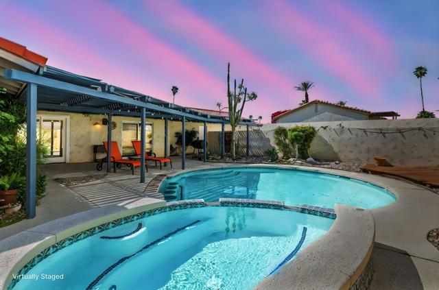 Beautiful Bermuda Dunes Country Club updated 3-bedroom, 2-bath home with pool and spa, newly updated kitchen and spectacular views on a 13,068 sq ft lot. Recent home upgrades include new flooring, a remodeled kitchen, updated bathrooms, new appliances, and a new electrical panel--creating a move-in ready space with modern comfort. The open floor plan kitchen with living room enjoys high ceilings and welcomes natural light.Exit outside to your private desert retreat featuring a sparkling pool and spa, perfect for relaxing or entertaining. The fully fenced backyard provides excellent privacy and plenty of space to lounge, gather with friends, or let pets roam. In addition to the three spacious bedrooms, the home includes a second living room plus a private and finished oversized room tucked into the garage--perfect for remote work, gym, crafts room or storage. The oversized driveway offers ample room for RV parking or recreational vehicles. Located within the guard-gated Bermuda Dunes Country Club close to the entrance off 42nd Ave and Glass Dr for easy access home. A fantastic opportunity to enjoy resort-style living with space, privacy, and flexibility.