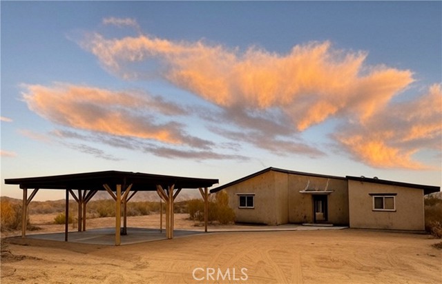NEW BUILD HOME!!! This home was recently finished as a custom-built desert oasis! Located right outside the main park entrance for Joshua Tree National Park. Convenient location for visiting the National Park while also experiencing a secluded, private desert landscape. This home features STUNNING VIEWS in every direction and the most amazing sunsets on earth, the back porch is positioned perfectly to enjoy these views. You will also find many custom features, like the concrete countertops in the kitchen and beautiful live edge wood countertops and accents in the bathrooms. The property sits on 2.7 acres of flat usable land to plan the most amazing entertainment space, with potential for pool, firepit, games, horses, ATV's etc... This home is perfectly set up for Air BnB for Joshua Tree National Park, the #2 rated national park in the USA with 3.25 million visitors per year, or can be enjoyed as a second home or primary residence. Best access to the property is from Wesley Rd off Aberdeen Dr.