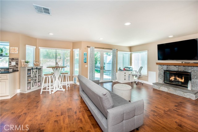 GREAT FLOOR PLAN - Located in one of Corona's most desirables neighborhoods - Sierra del Oro. Closest to orange county, close access to 91 and 71 freeways and shopping. New floorings were just installed by the seller through out the whole downstairs as well as new baseboards. Front door was just painted on one side the reburnished on the other side. This is a very comfortable floor plan with a formal living and dining room open kitchen with breakfast area and family room with a fireplace. Laundry area and guest bathroom are downstairs. The back yard is great for entertaining, party covered. This home has had the following upgrades. Waterproof luxury vinyl flooring in two of rooms upstairs. Solar panels - the maximum amount that fits the property's roof - Solar was purchased and own free and clear. Artificial grass – in the front and part of the back yard, Pavers in the front of the house instead of the cement. All new exterior paint is new about 2 years old. All wood trim around the windows and eaves replaced with a high quality wood when house was painted approx. 2 years ago. Kitchen upgraded, wet bar and a counter removed, creating more open transition into the breakfast area and family room. Beautiful French doors to the backyard. Alumawood patio cover in the backyard (brings more shade into the family room, keeping it cooler during summer).New dual pane windows in the family room, in the master bedroom and in the master bathroom. Solar screens on the windows in the three bedrooms upstairs. New AC and furnace unit - about 2 years old.