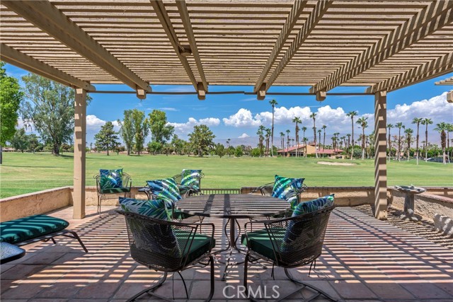 Discover this beautifully upgraded single-story end unit home with lots of privacy on the 7th fairway. Enjoy the view of the golf course and mountains as you relax on the huge north facing patio which includes a 10-piece patio set with brand new cushions. The included BBQ has a direct gas line – so no more propane tanks! Step inside to an open concept design featuring new Shaker style kitchen cabinets, and quartz countertops which seamlessly flow into the dining space. The wide plank luxury vinyl flooring adds warmth and durability, complemented by fresh paint, new recessed lighting in the kitchen, and an inviting quartz surround fireplace with a new mantle. Unwind in the large primary suite, complete with a walk-in closet and vaulted ceilings. The ensuite bath with walk in shower has a new shower door. New ceiling fans throughout ensure comfort, while the newer HVAC system provides efficiency. The new Nest thermostat allows you to control the temperature from your phone no matter where you are. The 2nd bedroom is ideal for guests or a home office, and the hall bath has a laundry area with brand new washer and dryer. All of the windows & sliding glass doors were upgraded to dual pane a few years ago. A garage workbench and storage cabinets add practicality, along with a golf cart with brand new batteries and featuring a water-cooling system for cruising around the community. Golf carts can also be driven outside the complex to the nearby shopping centers with a variety of stores and restaurants. Woodhaven Country Club residents benefit from exclusive amenities, including a clubhouse with a restaurant and bar featuring live entertainment on the weekends, a well-equipped gym, premium cable T.V. & internet, a card room, a library, and an 18-hole golf course with reduced fees for residents, a pro shop, snack bar, driving range and putting greens. There are so many things to do – from lawn games to card games to karaoke to a docu-flix group that finds incredible films to watch together. Outside the clubhouse area are 7 tennis courts, 4 pickleball courts, and 4 pools and spas located at the 4 corners of the complex. Don't miss this incredible opportunity to own a home in one of Palm Desert's premier golf communities! This is easy living at its finest.