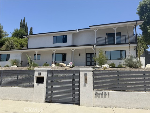 Nestled behind a gated entrance in one of Woodland Hills' most sought-after neighborhoods, south of the boulevard, this entertainer's dream seamlessly blends elegant design with state-of-the-art convenience. Inside, distressed white oak floors flow through a bright foyer entered via a custom glass front door, leading to a living room warmed by a striking stone fireplace. The chef's kitchen delights with crisp white cabinetry, quartz countertops, a generous island, and a large walk-in pantry — all designed to enhance both daily living and entertaining. Through the kitchen and living spaces, bi-folding glass doors open to a resort-style backyard featuring a black-bottom pool with spa, a terraced hillside walkway, integrated sound system, covered outdoor kitchen, and cozy gas fire pit — perfect for indoor-outdoor gatherings. The home is fully automated with a Control4 smart-home system for lighting, climate, audio, and security, satisfying the expectations of today's tech-savvy buyer. This is refined, modern living in the heart of Woodland Hills.
