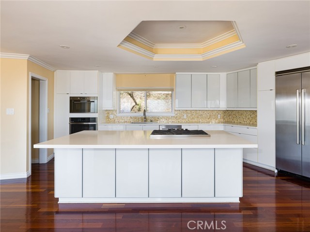 Absolutely amazing view!! This gorgeous 4-bedroom contemporary home will treat you, your family and guests to an amazing panoramic view from Malibu to Long Beach from nearly every room in the house. A WALL OF GLASS GREETS YOU AS YOU ENTER THE HOME EXPOSING THE MOST JAW DROPPING VIEWS. Spacious and modern, the open floor plan and completely remodeled island-style kitchen with custom soft-touch close cabinets make this home perfect for entertaining. Further amenities include: stainless steel built-in appliances, cherry wood floors throughout including plank cherry wood stairs, double-pane windows, double glass doors for the main entrance, a 3-zone high-efficiency heating and central cooling system, interior and exterior glass railings to maximize view from all rooms, recessed 4-inch lights with dimmer controls, high vaulted ceiling, three gas fireplaces and a wet bar. Plus, there are two patios and one large deck where everyone can enjoy the beautiful sunset views. There are custom built-in closets with ample storage both in the home and garage. Residents have access to the top ranked Palos Verdes Schools such as Mira Catalina Elementary, Miraleste Intermediate, and your choice from two of the top ranked high schools in California. A must see, this listing will not last long!