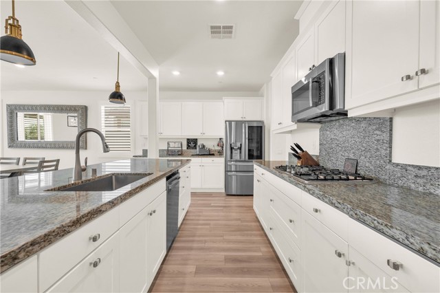 Newly built in 2022 with NO HOA, this stunning 6-bed, 5-bath home offers 4,121 sq ft of upgraded living space and Next Gen/ADU-style downstairs suite — perfect for multigenerational living, rental income, or guests. The downstairs unit includes 2 bedrooms, a private entrance, its own driveway and garage access, a kitchenette, living area, and separate laundry room. Upstairs features 5 bedrooms and 3 full bathrooms, including a spacious primary suite with mountain and city views and a junior suite with a private bath. A large upstairs loft offers flexibility as a gym, media room, or optional 7th bedroom. Additional highlights: two laundry rooms (upstairs and downstairs), open-concept kitchen, $80K in upgrades including modern flooring, extended concrete patio, and vinyl patio cover. Dual A/C systems. Prime location near Freeway 60, a golf course, and walking distance to a park with playground. A rare find combining space, privacy, and income potential under $1M.
