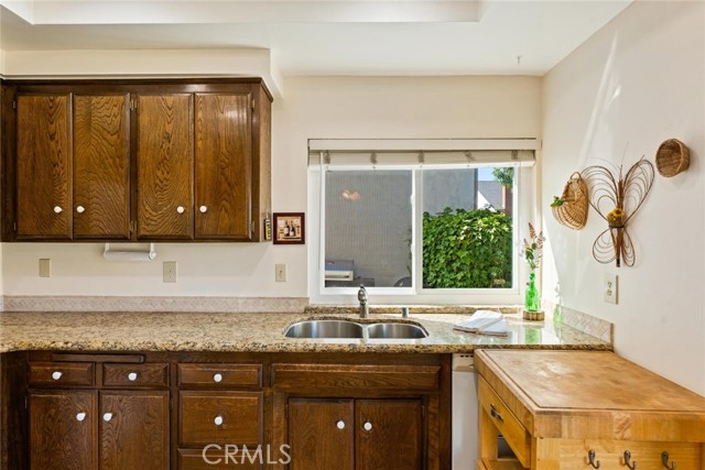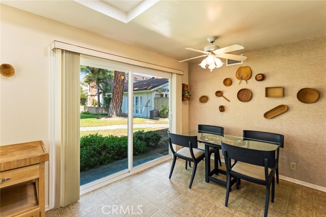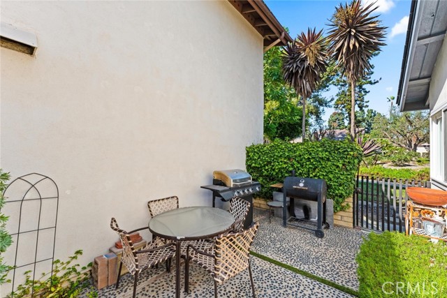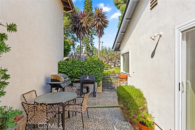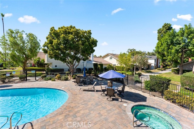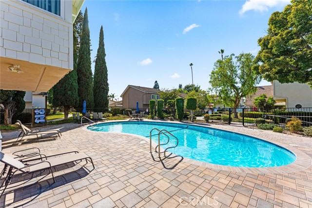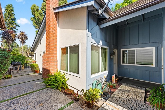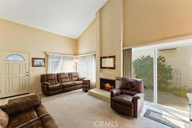 Welcome to this inviting single-story home in the highly sought-after Parkewood Community of Los Alamitos — a tranquil neighborhood known for its beautiful greenbelts, mature trees, and a true sense of community. This charming residence offers the perfect blend of comfort, privacy, and convenience in one of Orange County's most desirable areas. Step inside to discover a spacious and light-filled living room featuring dramatic vaulted ceilings, a striking floor-to-ceiling brick fireplace, and sliding glass doors that open to the lush garden views. The open floor plan flows easily into the bright kitchen and dining area, where large windows and sliding doors bring in natural light and peaceful greenbelt views — creating a warm and inviting space for everyday living and entertaining. The newer double pane windows and sliding doors also reduce outside noise. The kitchen offers granite countertops, rich wood cabinetry, recessed lighting, and direct access to a private patio perfect for morning coffee, weekend barbecues, or quiet evenings outdoors. The home's thoughtful layout includes two bedrooms and two baths, including a generous primary suite with ample closet space and an en-suite bathroom. Enjoy a private, gated front courtyard framed by colorful plantings, brick accents, and custom pebble-finish pathways — adding character. You will enjoy a good size 2 car side-by-side two-car garage with ample storage in rafters and in front of cars. plus ample side yard with storage sheds. Just steps away, the meticulously maintained community offers meandering walking paths, a sparkling pool, relaxing spa, and a clubhouse with kitchen and entertainment space — ideal for gatherings with friends and neighbors. Located near award-winning Los Alamitos schools, shopping, dining, and just minutes to Seal Beach and major freeways, this home combines the ease of single-story living with a lifestyle of comfort and community. Don't miss this rare opportunity to own in Parkewood — where homes are rarely available and pride of ownership shines throughout.