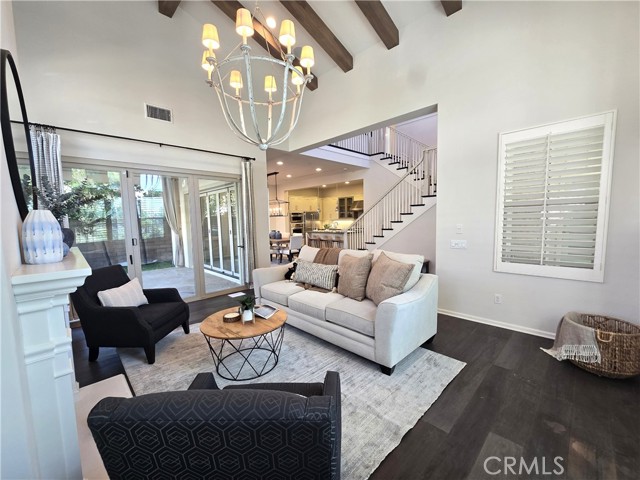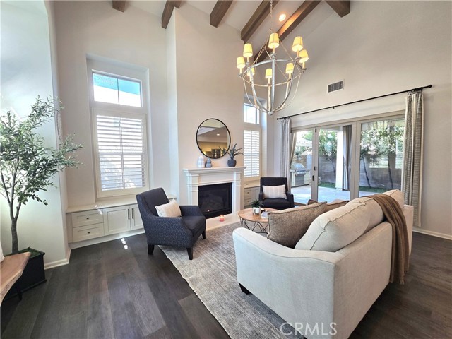 Discover the award-winning, fully upgraded model home at the heart of Beacon Park in Great Park. This contemporary residence spans nearly 3,000 sq. ft. on a 7,000-sq. ft. lot and features 4 bedrooms and 4½ bathrooms within an open-concept layout. Step into the expansive living room perfect for movie nights or entertaining with built-in ceiling Bluetooth surround sound. The gourmet kitchen showcases an oversized island, extensive counter space, custom cabinetry, a large pantry, and stainless-steel appliances to satisfy every culinary ambition. Rich hardwood flooring flows throughout the downstairs, leading you to a cozy backyard oasis complete with a BBQ bar and patio seating. For added flexibility, a private downstairs suite offers its own living area, full bathroom, and separate entrance ideal for guests or a home office. Upstairs, the luxurious master suite invites you to unwind with a generous walk-in closet, while a spacious laundry room enhances daily convenience and overall home value. Sunlight pours in through abundant windows, illuminating the home and framing picturesque neighborhood views. Level 2 EV Plug Ready! Don't miss your chance to call this dream home in Irvine's Great Park your own.