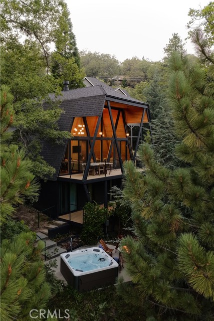 Welcome to The Great Escape! Tucked in the trees, sitting above the lake, and wrapped in glass, this fully renovated home blends modern design with warm, natural textures. Cathedral ceilings, lake views, and unique architecture make it feel like a true mountain retreat. Taken down to the studs and rebuilt with intention, every detail was done right. New HVAC, plumbing, electrical, full in-house generator, and high-end finishes that feel organic to the space. A wall of glass floods the main living area with natural light and frames the views of the trees and lake. A bold fireplace grounds the space, while the large deck extends your living area outdoors. The kitchen, dining, and living all flow together effortlessly, creating an easy, comfortable space to relax and feel at home. Upstairs is your own private lofted primary suite. Downstairs, you'll find three additional bedrooms and access to an expansive lower deck and private spa area, complete with a firepit to keep things cozy. Ideally located in coveted North Bay, just a short walk to the lake's edge and first tier from the lake, this property offers the perfect combination of privacy and proximity. With near level entry, a two-car garage, and a location just minutes from the lake, village, and Blue Jay, The Great Escape checks all the boxes. Whether you're looking for a successful short-term rental, a weekend getaway, or a place to call home full-time, this property has it all and is a very successful Airbnb.