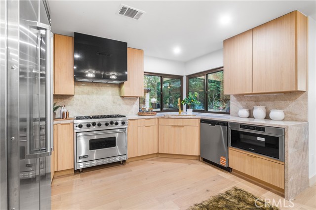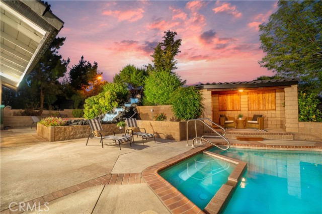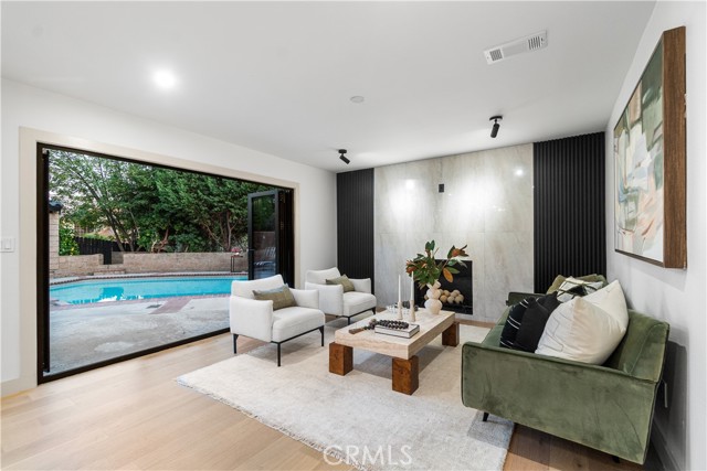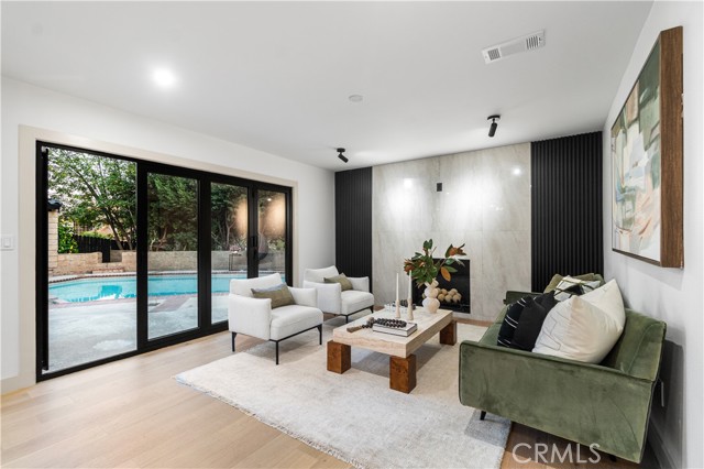 Prime corner lot zoned as Equestrian Estate allowing for up to 5 horses to be stabled on site! The home has been completely remodeled & is ready for you to build your new barn & corral for your beloved horses!. Exuding modern luxury finishes in a tranquil & private setting this home checks all the boxes. Enjoy beautiful oak flooring throughout, soft white LED lighting & thoughtfully appointed sparkling chandeliers which accent the focal points of the home. All new windows, complete with 2 sets of folding glass doors in lieu of traditional sliders enable almost the entire back of the home to be open to the outside for a true entertainer's dream. Revel in your all new Chef's kitchen, complete with 6 burner Viking stove & Viking refrigerator & sleek, ultra-modern cabinetry topped with luxurious quartzite counter-tops. Your guests will be hanging out around the matching kitchen island while you entertain them with appetizers. From there you can move to the contemporary dining room featuring your newly clad-in quartzite fireplace as a focal point of the space. Or you may choose to retire to the Family room which features one of the two sets of folding glass doors leading to the outside patio. Boasting 3 full bedrooms & 2 full bathrooms downstairs there is plenty of room for family or guests. Both downstairs bathrooms are also luxuriously appointed with beautiful tile & surround work & lighted vanity mirrors. An all new enormous master suite awaits upstairs, featuring 2 closets & a sitting area! The en-suite bathroom has the latest spa-style design featuring an in shower soaking tub with floating vanities & lighted mirrors. The grounds are ample and serene with a waterfall next to the pool to add ambiance outside or inside with the folding doors opened up. The pool can be heated and has 2 separate covered rustic cabanas for your enjoyment to just relax or read a book. In addition, there is also a large deck off of the home overlooking the lower grounds of fruit trees that is perfect for meditation, cocktail parties, or just relaxing by yourself with large mature trees providing ample shade & serenity to the space. The lower grounds would be where your new barn, corral or ADU can bu built, adding additional income as a rental or for stabling other horses. Lastly, this home features a 3 car garage with new epoxy flooring & a driveway that will hold up to 4 cars. This is truly a gem to see in person. Please call to schedule your private tour today.