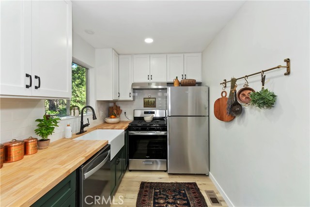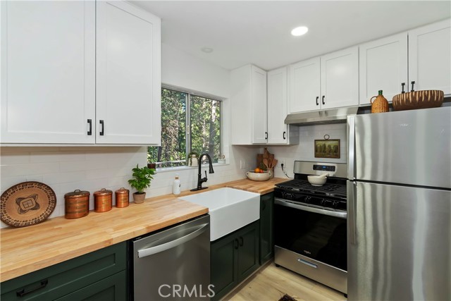 Welcome to a beautifully remodeled mountain retreat nestled in Lake Arrowhead's desirable Cottage Grove neighborhood and walking distance to the lake/village. This charming 3-bedroom, 2-bathroom home offers full Lake Rights. Step inside to find a warm, inviting interior featuring a cozy living room with fireplace, an upgraded open-concept kitchen with butcher block countertops plus farmhouse sink, and a spacious main-level primary suite with beautifully updated bathroom. Upstairs are two bright guest bedrooms with forest views, while the lower level offers a versatile bonus room perfect for entertainment or additional sleeping quarters. Enjoy serene mornings and evenings on two oversized decks surrounded by mature trees, ideal for relaxing or entertaining. Located just minutes from Lake Arrowhead Village, shops, and restaurants, and within the Arrowhead Woods community, this property offers both privacy and convenience. Whether you're looking for a full-time residence, vacation home, or investment opportunity, this home delivers timeless mountain charm with modern comfort in one of Southern California's most sought-after lake communities.