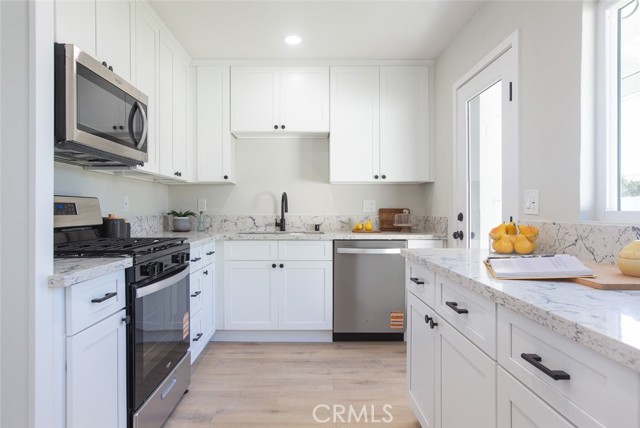 Beautifully RENOVATED 3-bedroom, 1-bathroom home with approximately 1044 square feet of living space and situated on 5015 square foot lot. The home has beautiful curb appeal with a freshly landscaped front yard and inviting front porch. The updated kitchen has new cabinets, sleek new counter tops, new stainless-steel appliances, and stylish new plumbing and lighting fixtures. The bathroom has a new vanity, new fixtures and custom tile work. Other features include a new HVAC system, new energy efficient vinyl windows, new roof, freshly painted interior and exterior, luxury flooring in common areas and bedrooms, new upgraded electrical panel, and indoor laundry for your convenience. There is a spacious 2 car garage with additional off street driveway parking. The private enclosed backyard has a spacious lawn area perfect for outdoor fun and entertainment.