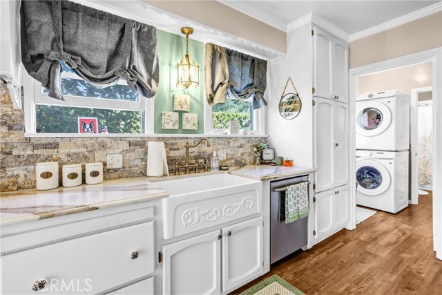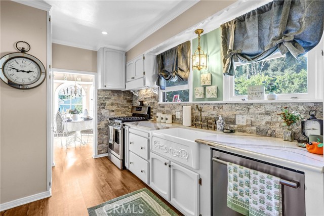 This 1935 charmer captures the essence of Claremont's architectural heritage, beautifully blending classic character with thoughtful modern updates. Nestled in the sought after North Claremont Sumner / Piedmont Mesa neighborhood, just minutes from the Claremont Colleges, village shops, local dining, and Claremont's famous hiking and walking trails, this home offers a rare combination of history, charm, and everyday comfort. Lovingly maintained, it features beautiful waterproof luxury vinyl flooring, a remodeled kitchen, refreshed bathrooms, a new HVAC system, complete copper re-plumb, refinished lighting, and elegant finishes throughout. The kitchen showcases soft close drawers, a real stone backsplash, and custom cabinetry with an open China alcove that highlights the home's timeless craftsmanship. Tucked away from the street behind its own private gate, the property is approached via a long private driveway, creating a hidden oasis of peace and serenity. Mature landscaping surrounds a stamped concrete courtyard and a spacious lot, offering the perfect blend of privacy, outdoor entertaining, and expansion potential. Between the private front courtyard, extended driveway with RV parking, and expansive rear yard, this home provides exceptional versatility and tranquility. Inside, you'll find a cozy breakfast room with built in cabinets, a convenient indoor laundry room with attic access, and a detached 2½ car garage with abundant shelving and storage. This is a rare opportunity to own a private, gated sanctuary in Claremont's North Claremont Sumner / Piedmont Mesa enclave, where vintage charm, modern upgrades, and secluded serenity come together in perfect balance.
