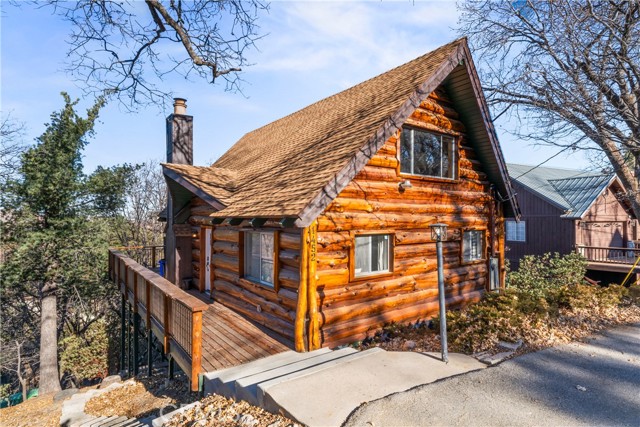 Beautifully updated 4-bedroom, 3-bath log-sided home with coveted full lake rights, perfectly situated in the serene mountain community of Lake Arrowhead. This spacious almost level-entry home offers approximately 1,600 sq/ft of thoughtfully designed living space, ideal for both full-time living and vacation getaways. Step inside and be welcomed by a bright, open floor plan designed for entertaining. The main level features soaring vaulted ceilings, a grand stone fireplace, and wood-trimmed custom windows that showcase this space in natural light while framing tranquil forest views. The fully renovated kitchen seamlessly flows into the dining and living areas, creating the perfect space for gatherings, celebrations, or cozy nights. Two generously sized bedrooms and a beautifully remodeled full bathroom, highlighted by chunky wood trim throughout, complete the main level. Upstairs, a private loft-style en-suite bedroom offers a peaceful retreat with its own full bath, perfect for guests or a quiet office. The lower level features a large, separate en-suite bedroom with remodeled bath, spacious living area, and ample storage. Outdoor living is equally impressive with an expansive wrap-around deck that offers abundant space for entertaining, dining al fresco, or simply relaxing while enjoying stunning mountain sunsets and crisp mountain air. Located just minutes from Lake Arrowhead Village, the marina, schools, and local amenities, this home strikes the perfect balance between peaceful mountain living and convenient access. Fully renovated and possibly turnkey, this home blends rustic mountain charm with modern upgrades and luxurious finishes. With level entry access and exclusive lake rights, this property is truly an entertainer's dream in one of Southern California's most desirable mountain communities. Schedule your tour today and discover the perfect blend of comfort, style, and nature in this updated Lake Arrowhead Gem!