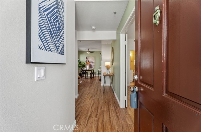 Welcome to this beautifully updated 2 Bedroom 2 Bathroom single level condo. Featuring 2 Master Suites, each with its own full bathroom and walk-in closet. One bathroom includes a tub with shower, while the other has a walk-in shower for added versatility. Enjoy the open living space with high ceilings, a fireplace in the living room, and laminate wood-like flooring that brings warmth throughout. The upgraded kitchen offers plenty of storage, modern finishes, and is paired with the convenience of an in-unit stackable washer and dryer located in the kitchen closet. Parking is convenient with a 1-car detached garage, an additional assigned space, plus ample guest parking. This home is move-in ready and offers the perfect blend of style and function in a desirable location, near the beach, trendy restaurants, and local grocery stores, you'll have everything you need just minutes away.