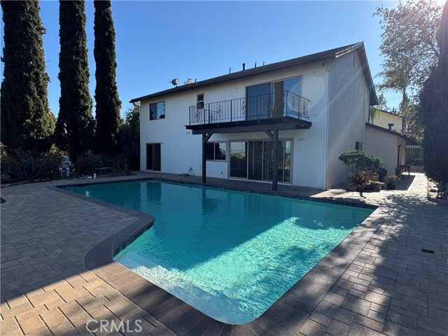 Perched above Chatsworth on a private 13,249 sq ft flag lot, this freshly renovated 4-bedroom, 2.5-bath home offers panoramic views of the San Fernando Valley. The 2,211 sq ft layout has been thoughtfully updated in 2025 with major system improvements including a new roof, HVAC, and a brand-new main sewer line to the city connection; interior renovations featuring a modern galley-style kitchen and updated bathrooms; exterior upgrades such as a new driveway and patio pavers; and outdoor enhancements including a resurfaced pool. The entry level offers a welcoming living room with fireplace, a dining area, and a breakfast nook adjoining the galley-style kitchen with ample cabinet space. A convenient 3/4 bathroom serves the downstairs. Two sets of large sliding glass doors open to the private spacious backyard, where a resurfaced pool, new equipment, paver patios, and easterly views create an ideal setting for outdoor living and entertaining. The primary bedroom includes a private patio with sweeping views, an ensuite bath with vanity, and dual closets. Three additional bedrooms share a full bathroom, providing comfortable accommodations for family or guests. An attached garage, previously converted into a den, workshop, and laundry area, offers additional usable space but has not been part of the recent renovations — presenting flexibility for future customization. With its elevated hillside setting, modern upgrades, and unique flag-lot privacy, this Chatsworth home blends comfort, functionality, and breathtaking views into one rare offering.