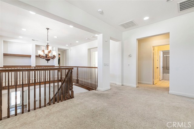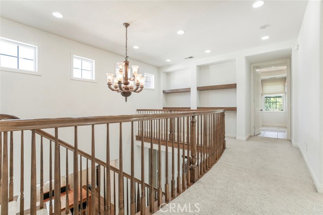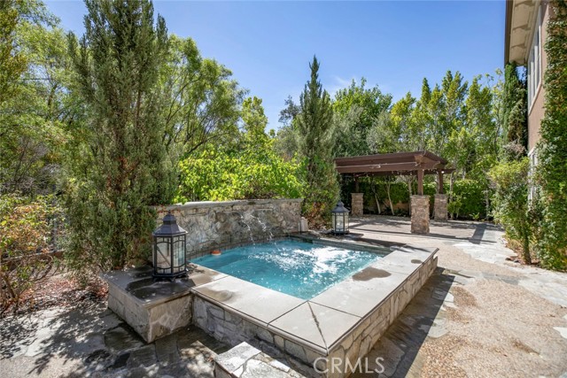 New interior paint throughout and refreshed! Welcome to the prestigious gated community of Westridge Valencia, where elegance, comfort, and lifestyle come together. Now back on the market with a fresh new look, this beautifully appointed home has just been refreshed with new interior paint throughout and some updates that make it feel crisp, clean, and move-in ready. Tucked away in a private cul-de-sac, the home opens with hardwood floors, crown molding, and a wood-finished foyer ceiling that creates a warm, refined first impression. A custom wine storage nook tucked behind a discreet door adds a touch of charm and sophistication. The spacious floor plan features formal living and dining rooms with coffered ceilings, a large family room with fireplace and built-ins, and a chef's kitchen with granite counters, center island, and built-in stainless steel appliances — ideal for entertaining or everyday living. A downstairs en suite bedroom and a dedicated office provide flexible options for guests or work-from-home needs. A dramatic staircase with a high ceiling adds architectural volume and natural light as you transition to the upper level. Upstairs, a generous loft serves as a central retreat connecting four bedrooms, including one with its own en suite bath. A convenient laundry room enhances functionality. The private primary suite is a true sanctuary with two walk-in closets and a spa-inspired bath offering dual vanities, a soaking tub, and a separate shower. Step outside to a backyard retreat designed for California living, featuring a spacious patio with a pergola-shaded section, a built-in BBQ with bar seating, and a tranquil spa with waterfall feature — perfect for gatherings or quiet evenings at home. Freshly painted and ready to impress, this home invites both new and returning buyers to experience its renewed charm. Living in Westridge means access to world-class amenities: a clubhouse, pools, tennis and pickleball courts, basketball courts, playgrounds, and scenic paseos for walking, jogging, or biking. Surrounded by the TPC Valencia golf course and located near award-winning schools, shops, dining, and outdoor recreation, this home delivers more than comfort — it offers a coveted lifestyle in one of Santa Clarita's most desirable neighborhoods.