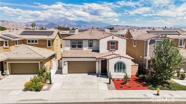 Don't miss this move-in-ready home that blends comfort, style, and efficiency in a prime location. This beautifully maintained two-story home offers a functional and flexible layout perfect for modern living. The first floor features updated tile flooring throughout, along with a private office that provides separation from the main living area — ideal for working from home or use as an additional bedroom — with direct access to the backyard. Upstairs, you'll find a spacious loft perfect for a media room, play area, or second living space. The master suite is generously sized, accompanied by two additional bedrooms. Carpeted flooring provides comfort throughout the second level. Additional highlights include: Fully paid-off solar panels, Plantation shutters on both floors, Water softener system, and Convenient access to the 210 and 10 freeways.