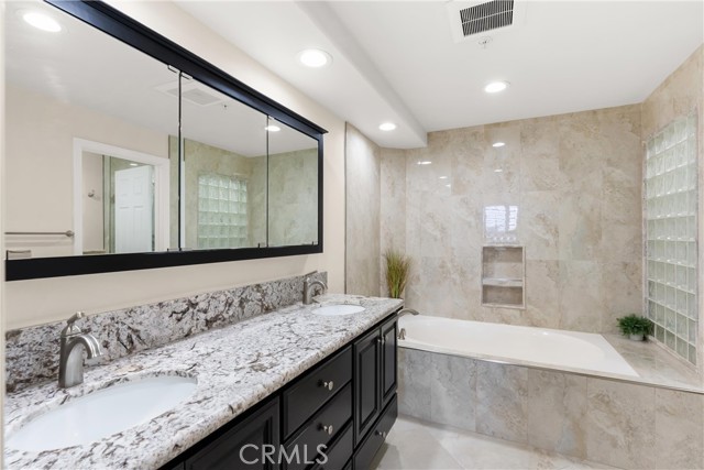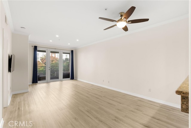Resort style living at The Metropolitan. LOWEST PRICED UPGRADED UNIT IN THE COMPLEX! Why spend $75-100K in remodel when this unit is turnkey! Very large one bedroom plus den that can be used as an office or second bedroom. Very good location. Only 1 common wall. Beautiful new flooring in living room and den. Office/den/second bedroom features sliding glass door and drapery for privacy. Kitchen features newer granite countertops, stainless steel electric oven and range, very large stainless refrigerator, dishwasher, front loading washer, and dryer all included in sale. 9-foot ceilings throughout. Highly upgraded Bathroom features dual vanity with stone countertops and cabinets with lots of storage, private toilet & walk in stone lined shower adjacent to large stone cased soaking bathtub. Bedroom has spacious walk-in closet and newer carpeting. Patio is very large with lush tropical landscape and greenbelt views. Close to South Coast Plaza & Fashion Island/ Newport Beach, all the best Orange County has to offer is at your doorstep. Within a few minutes of JW Airport & 3 major freeways this ideal location is for the most cosmopolitan of residents. Features pool, spa, gym & guarded gate. Water, hot water trash and gas are all included in HOA dues. Great opportunity here!